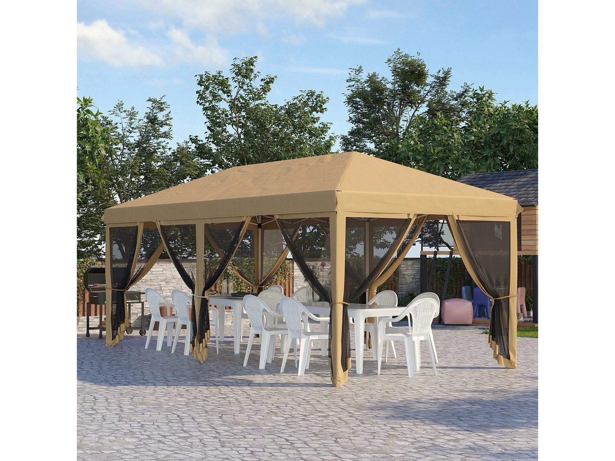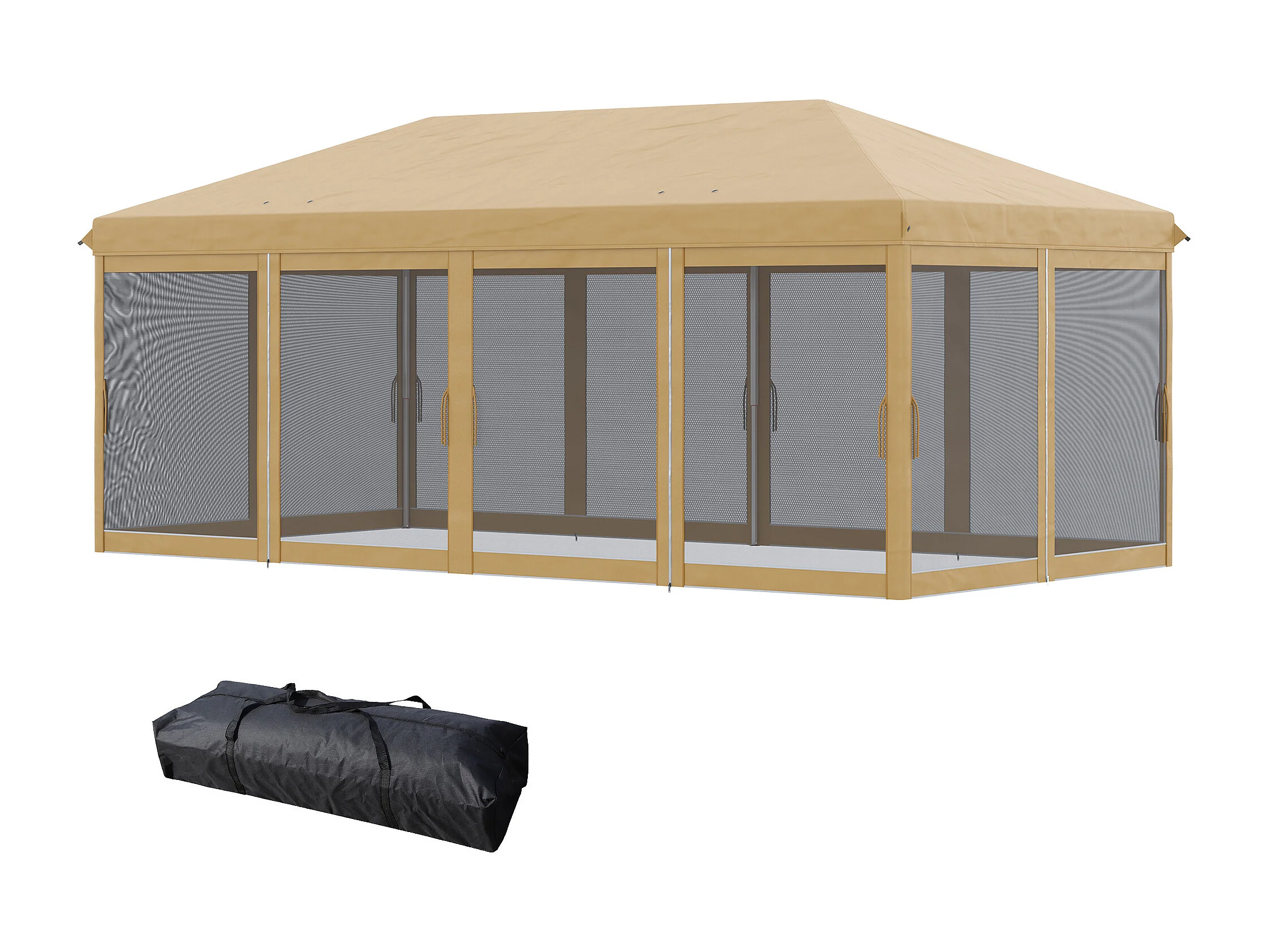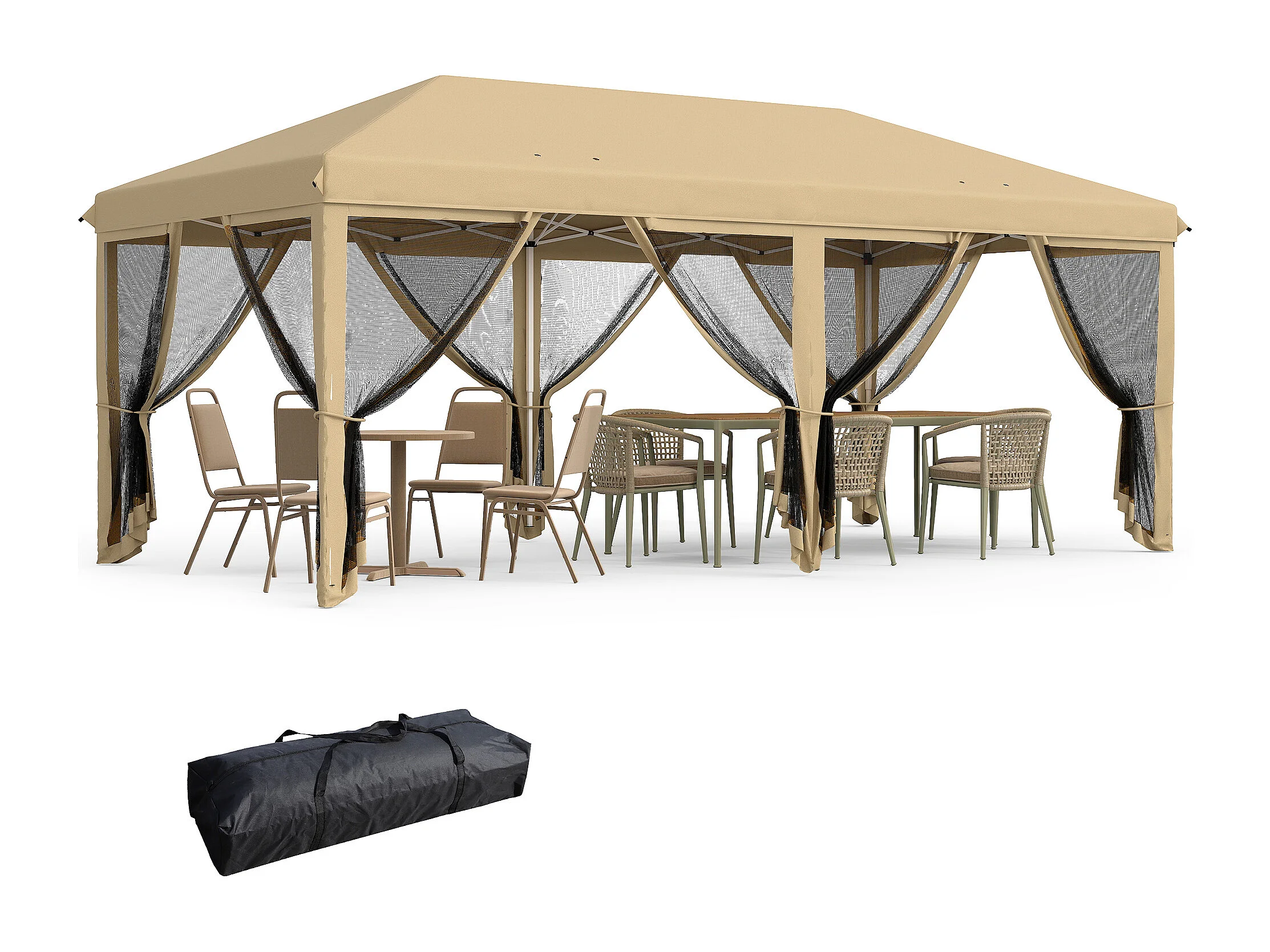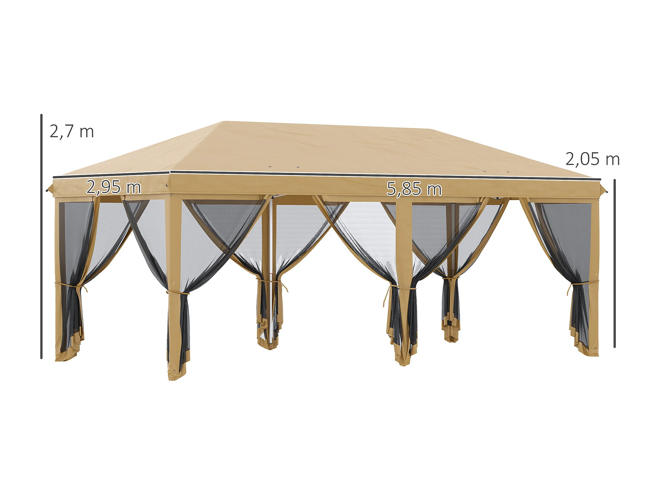 Tonnelle barnum pliant style colonial dim. 5,85L x 2,95l x 2,7H m 6 moustiquaires sac de transport beige noir