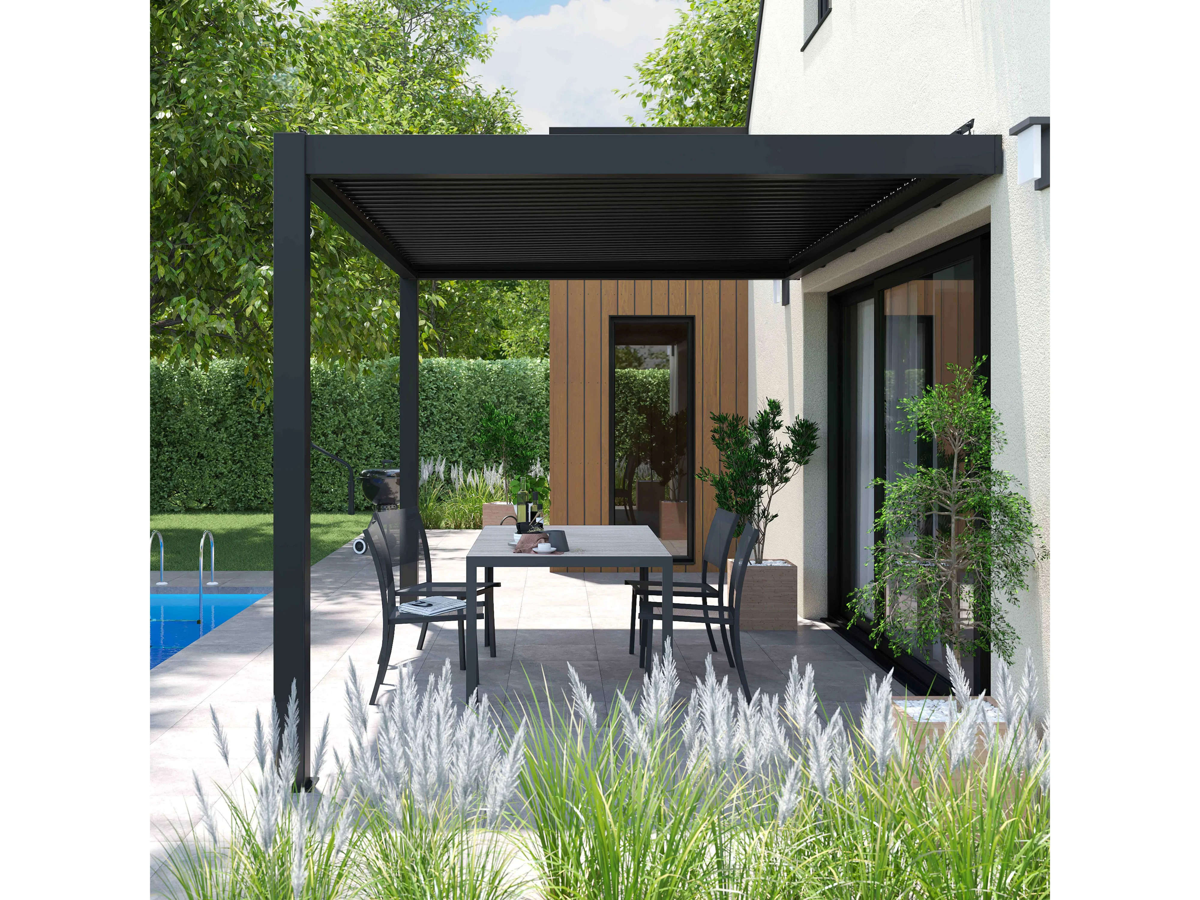 Pergola bioclimatique adossée Aluminium 3 x 4 x 2.5 m