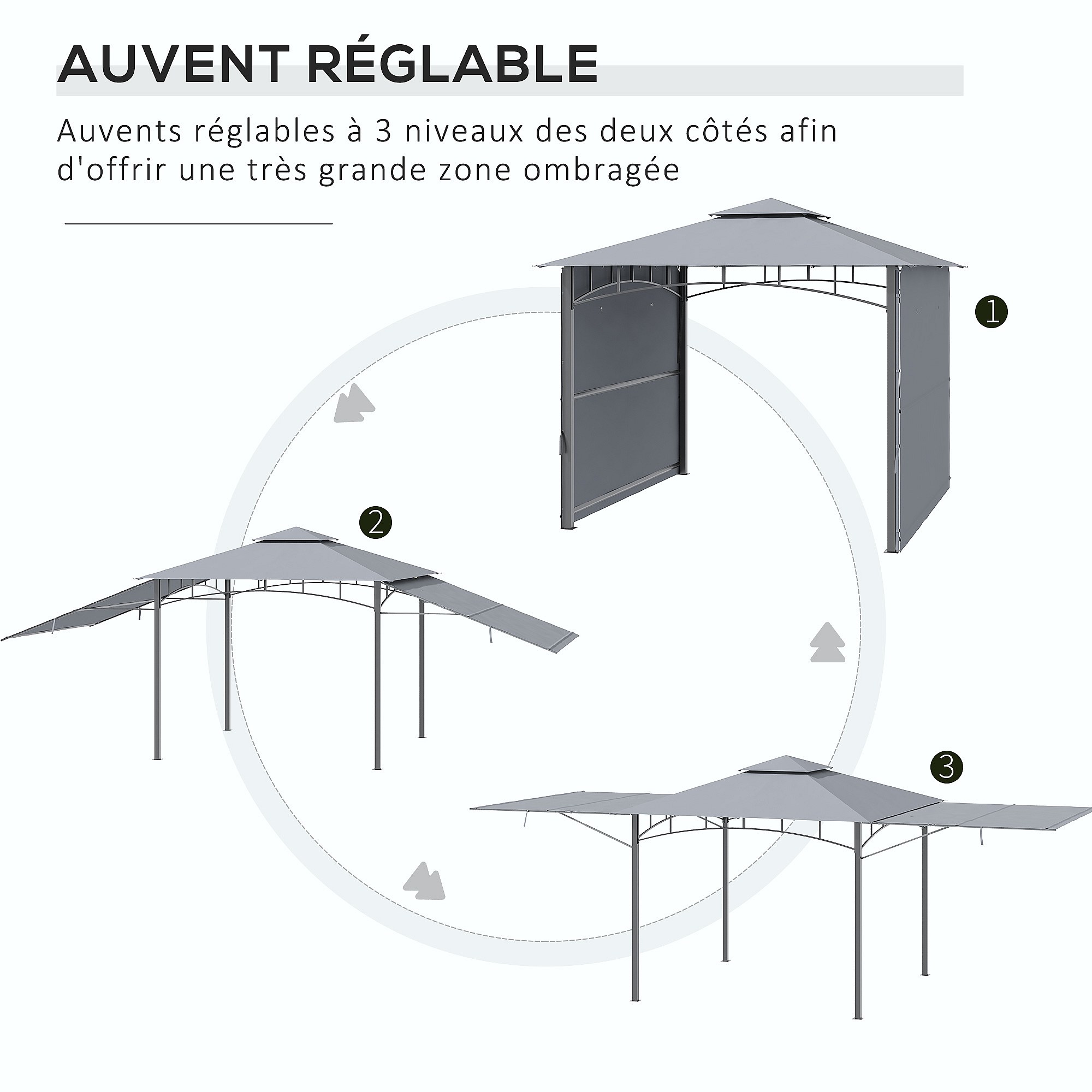 Tonnelle pavillon de jardin 3x3 m avec double toit pour ventilation auvents réglables structure en métal tissu polyester