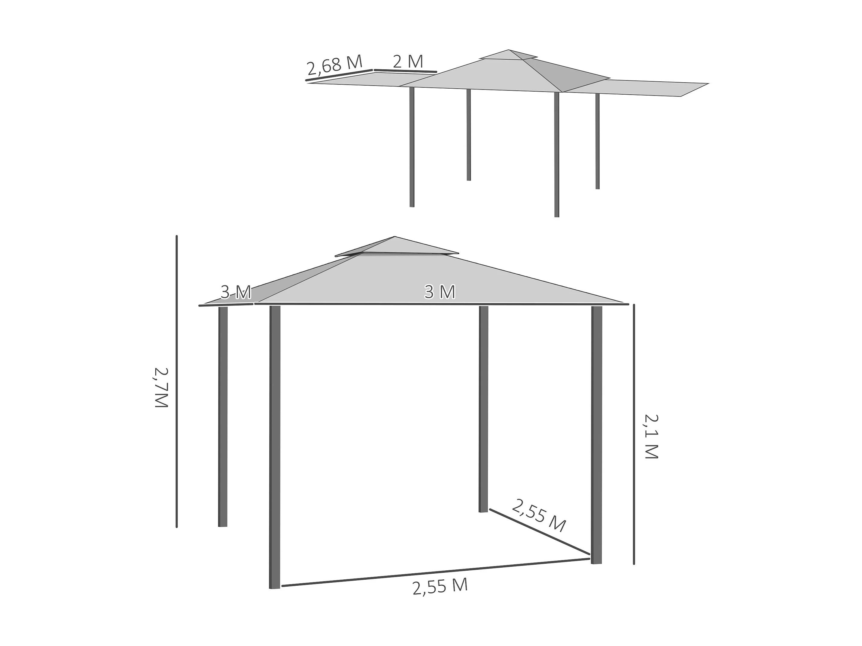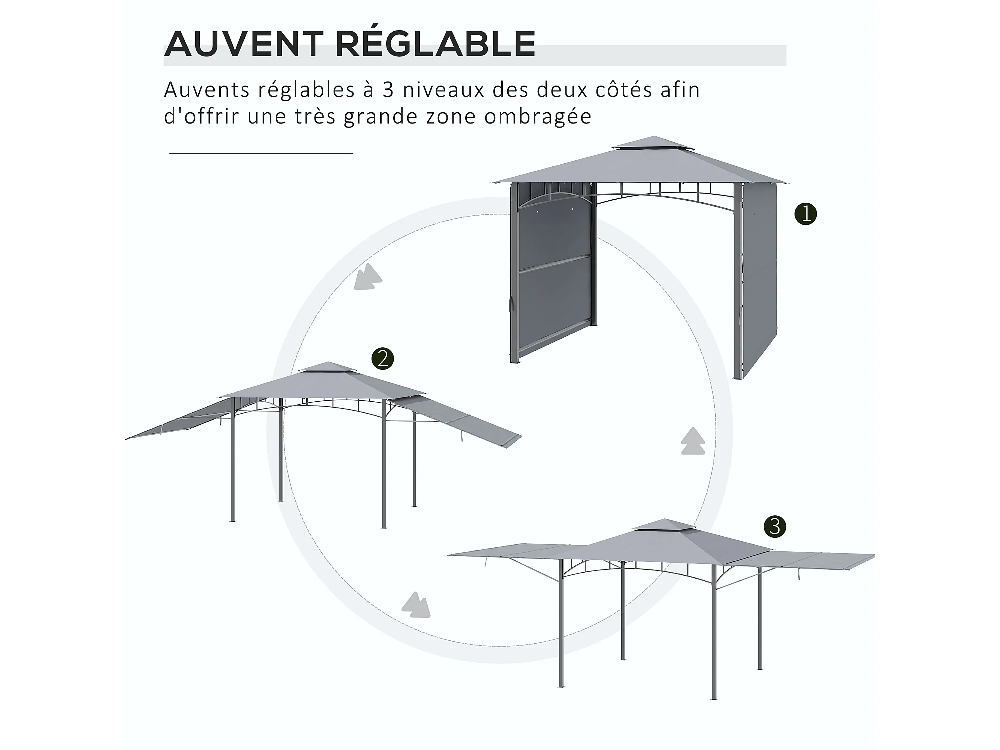 Tonnelle pavillon de jardin 3x3 m avec double toit pour ventilation auvents réglables structure en métal tissu polyester gris