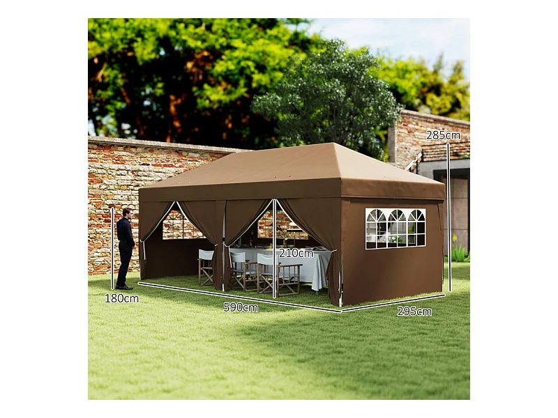 Tonnelle pop-up pliante 6 fenêtres ROUPOLI chocolat