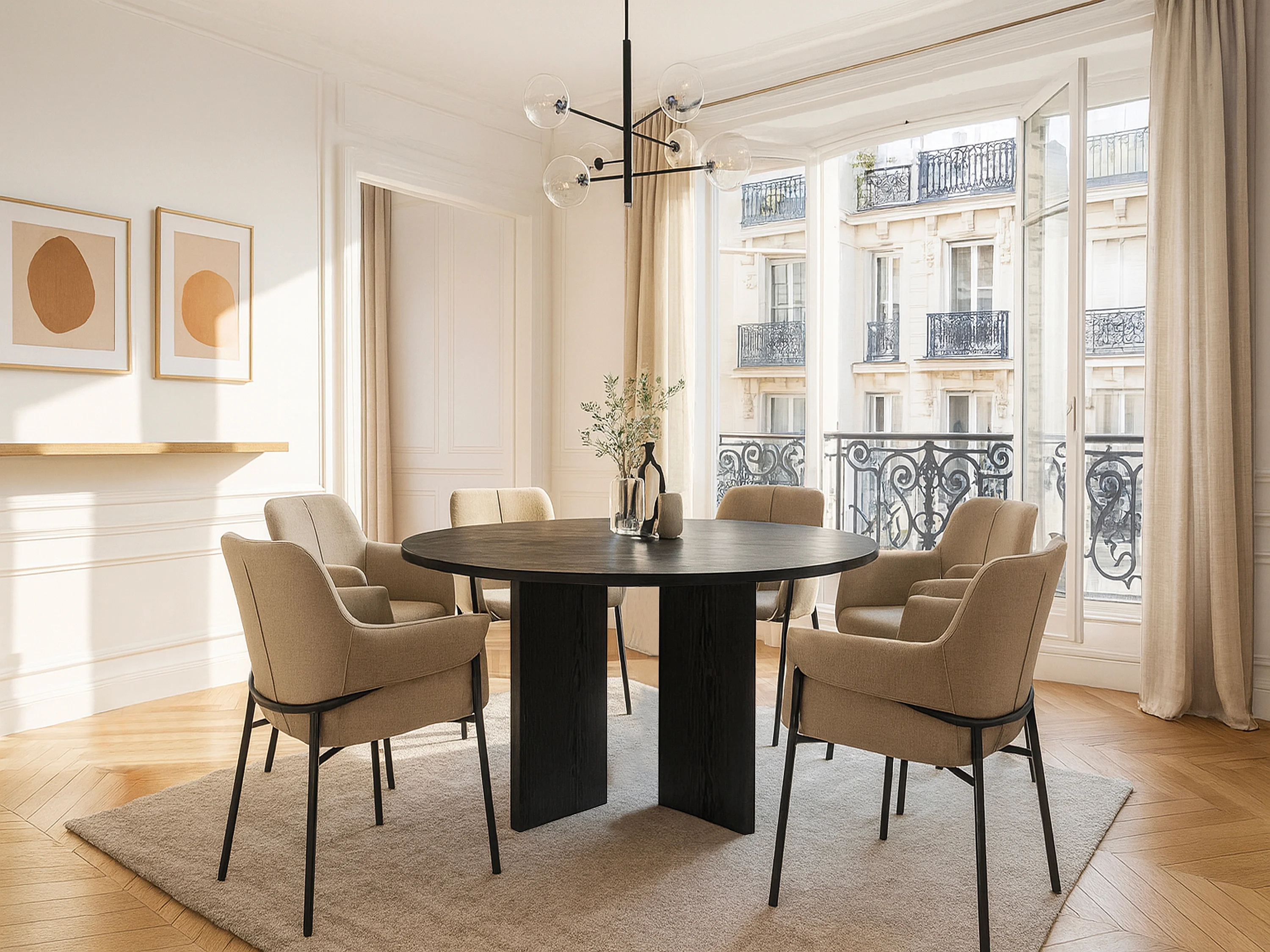 Table à manger ronde 6 personnes - Noir - TOPANIA