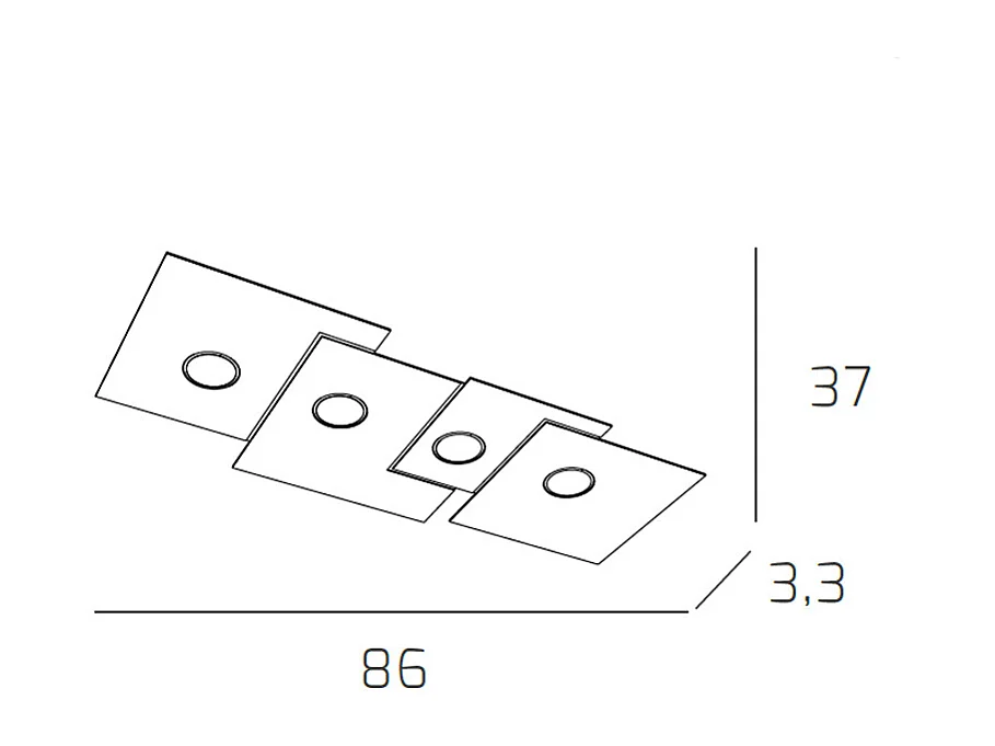 Plafonnier rectangulaire Toplight 4 lumières Plate avec douille GX53, structure grise, design moderne 86x37x3cm