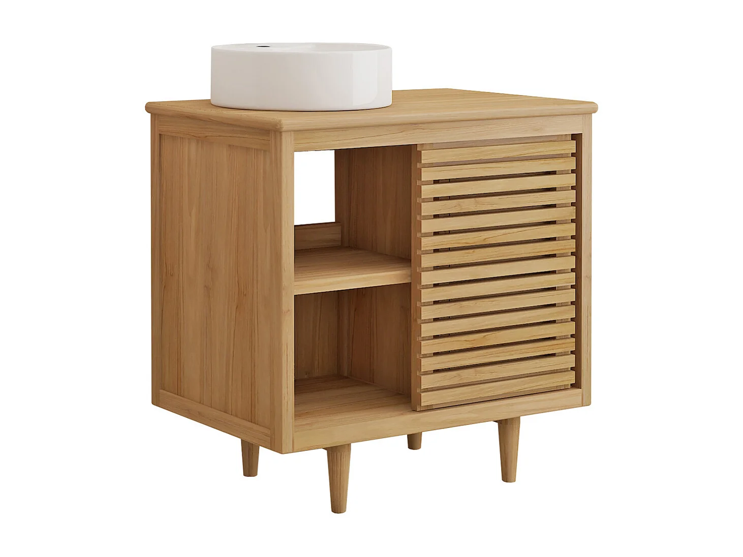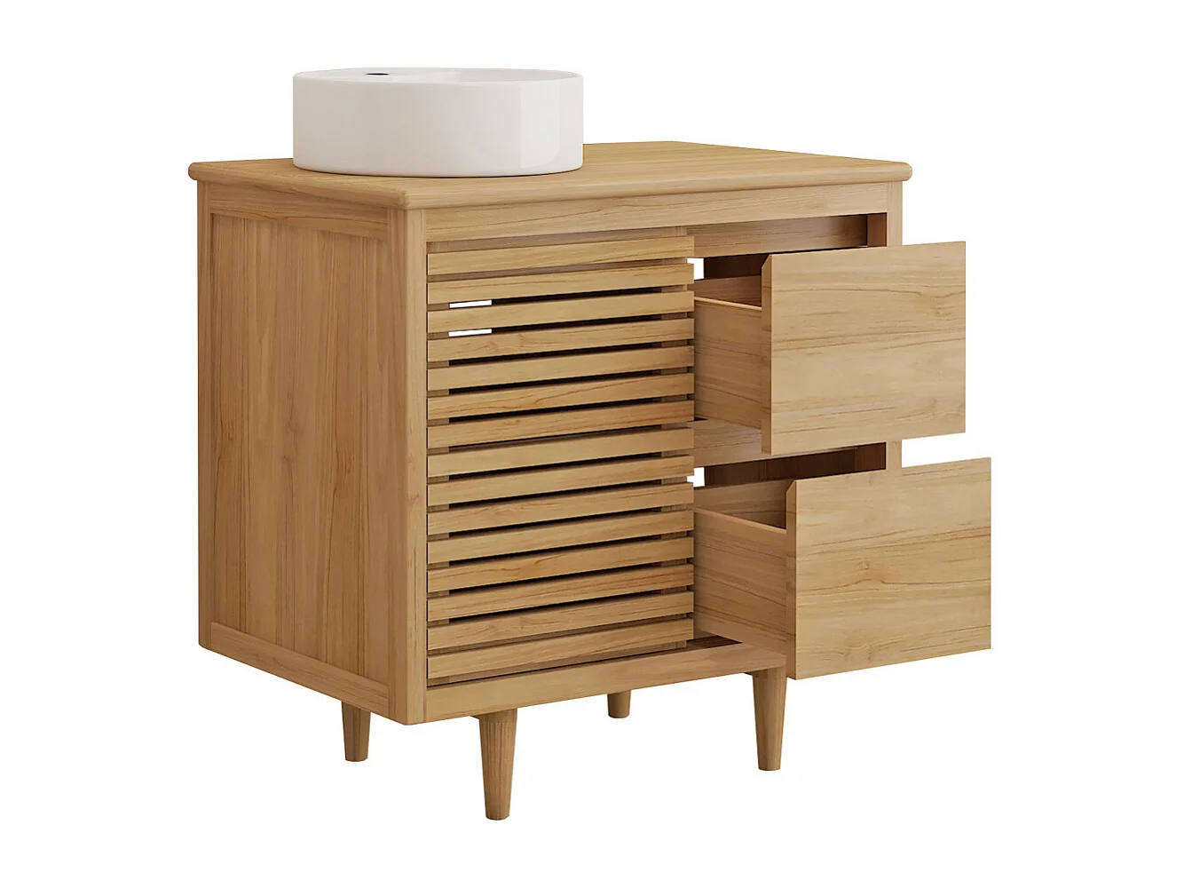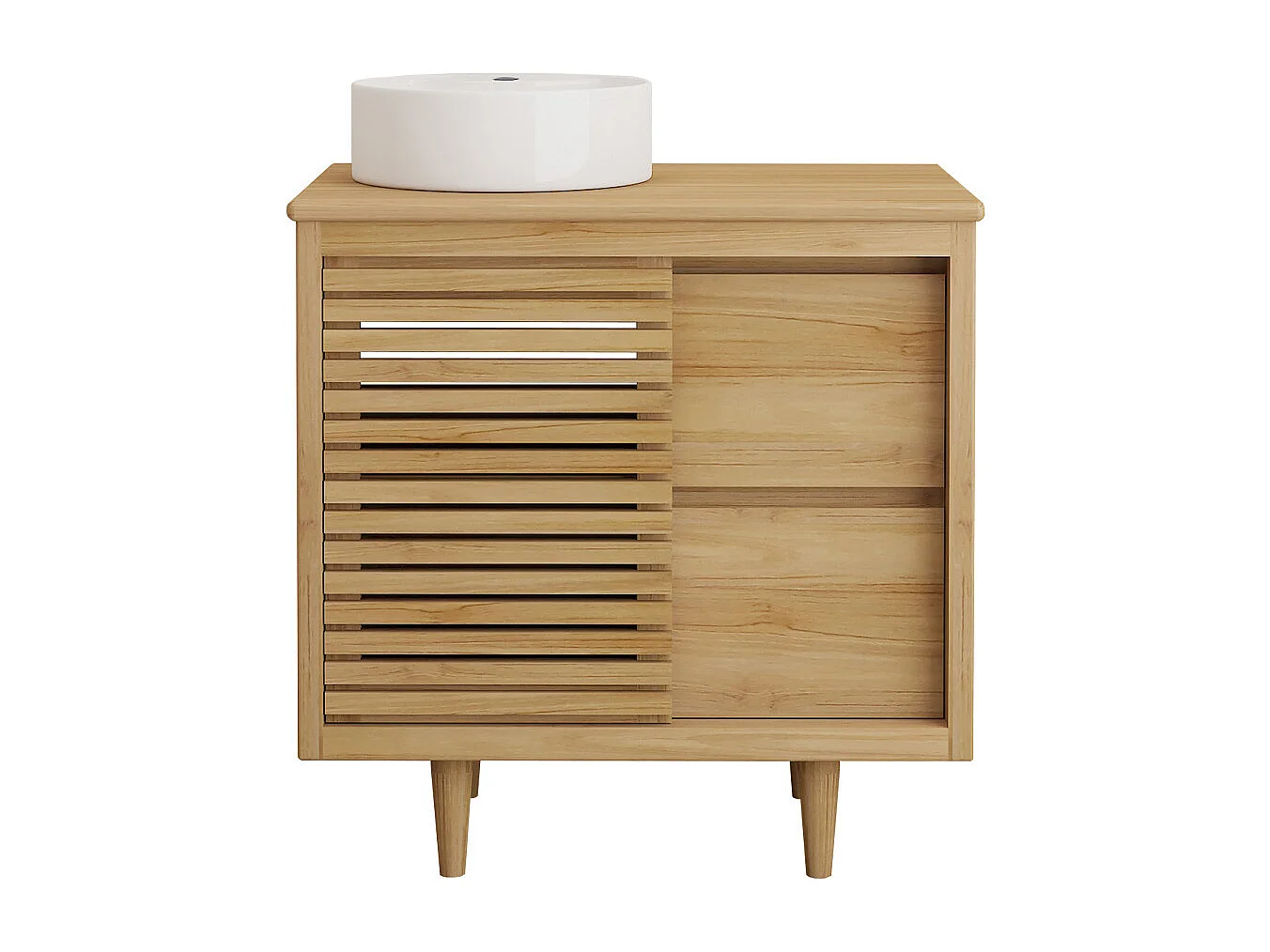 Meuble de salle de bain sur pieds en teck avec vasque à poser ronde en céramique - L80 cm - TORAJA