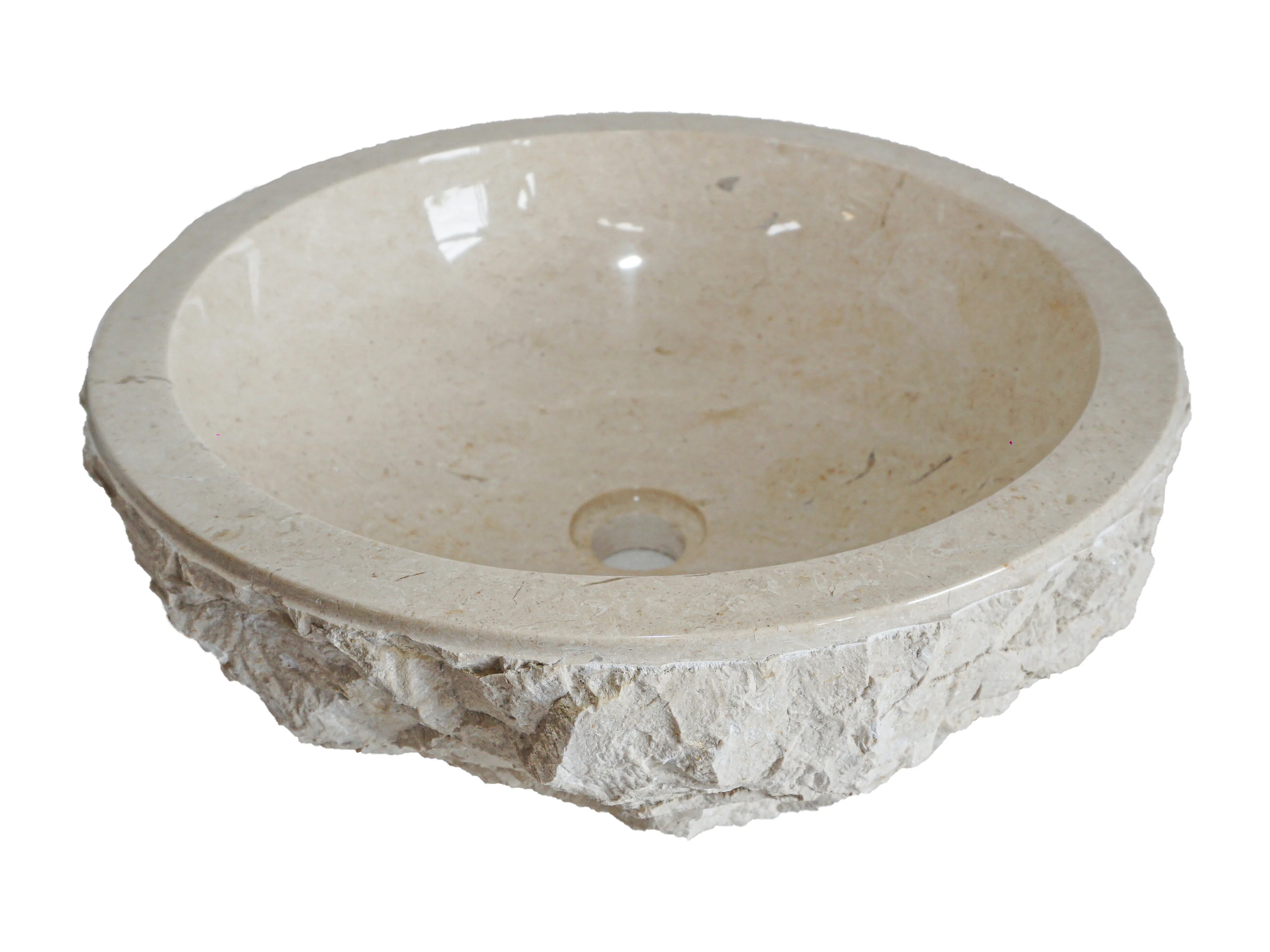 Meuble de salle de bain sur pieds en teck avec vasque à poser ronde en marbre couleur crème - L80 cm - TORAJA