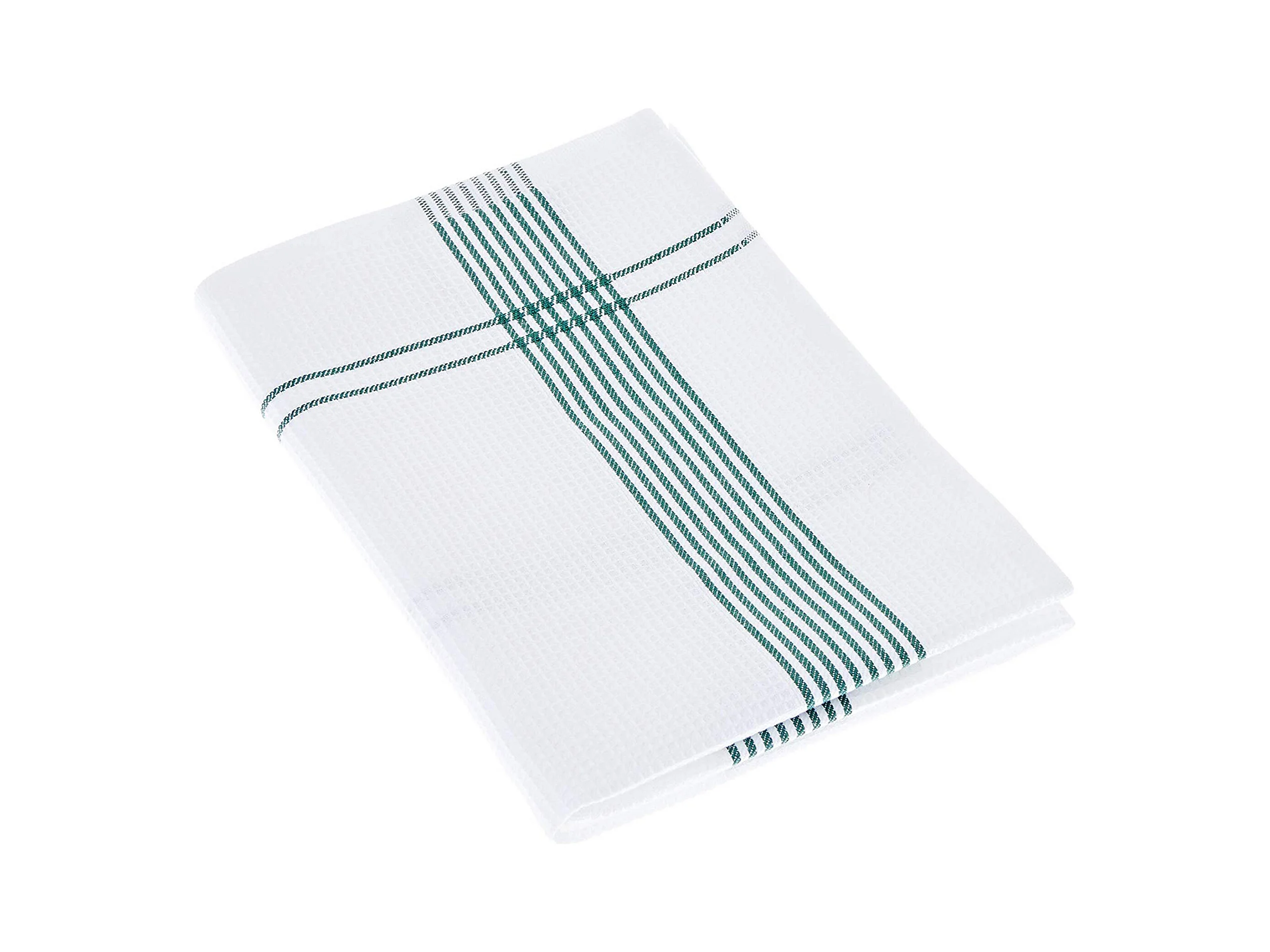 Torchon de cuisine 50x70 cm nid d'abeille WAFFLE PIQUET blanc filet vert