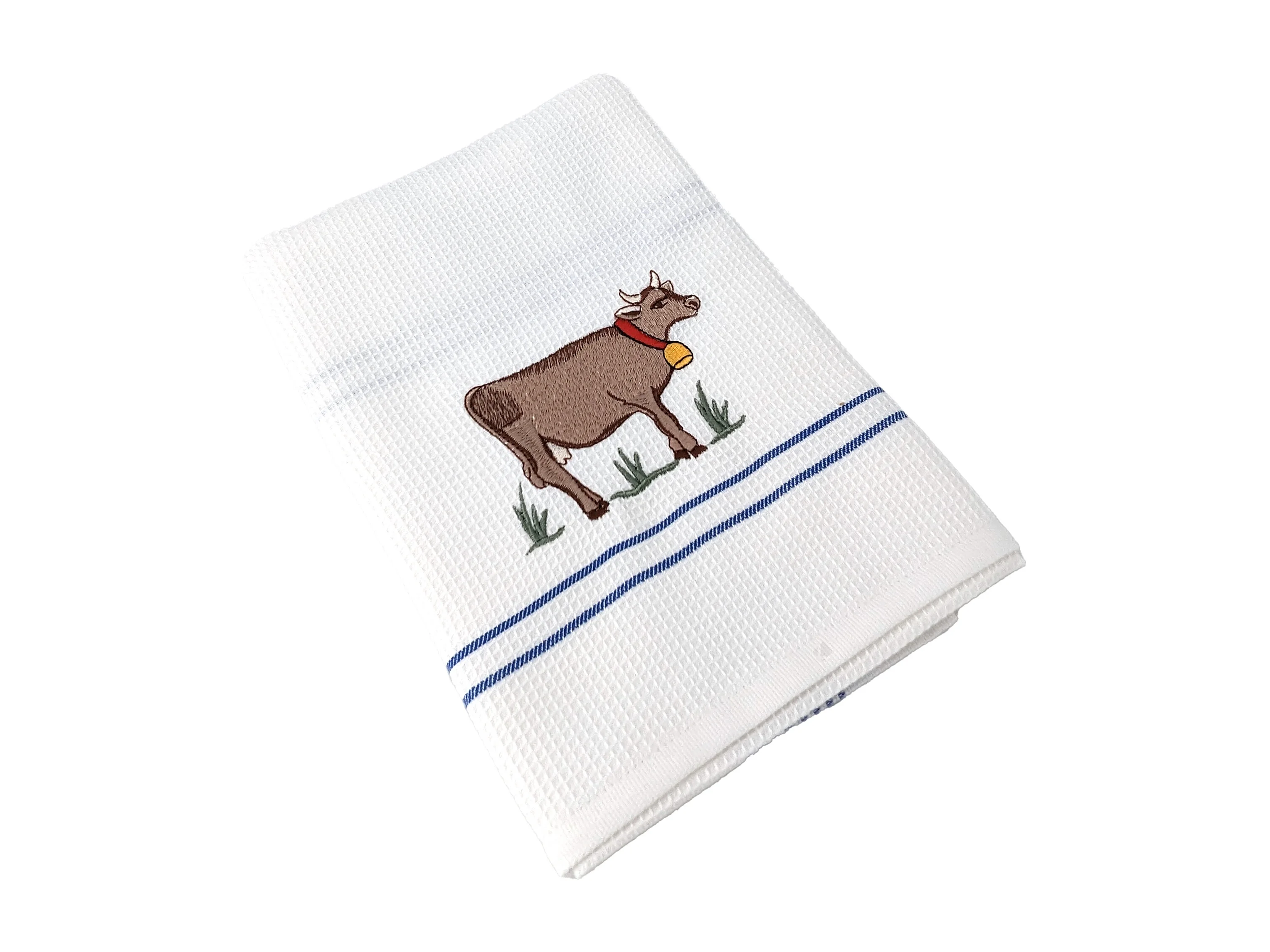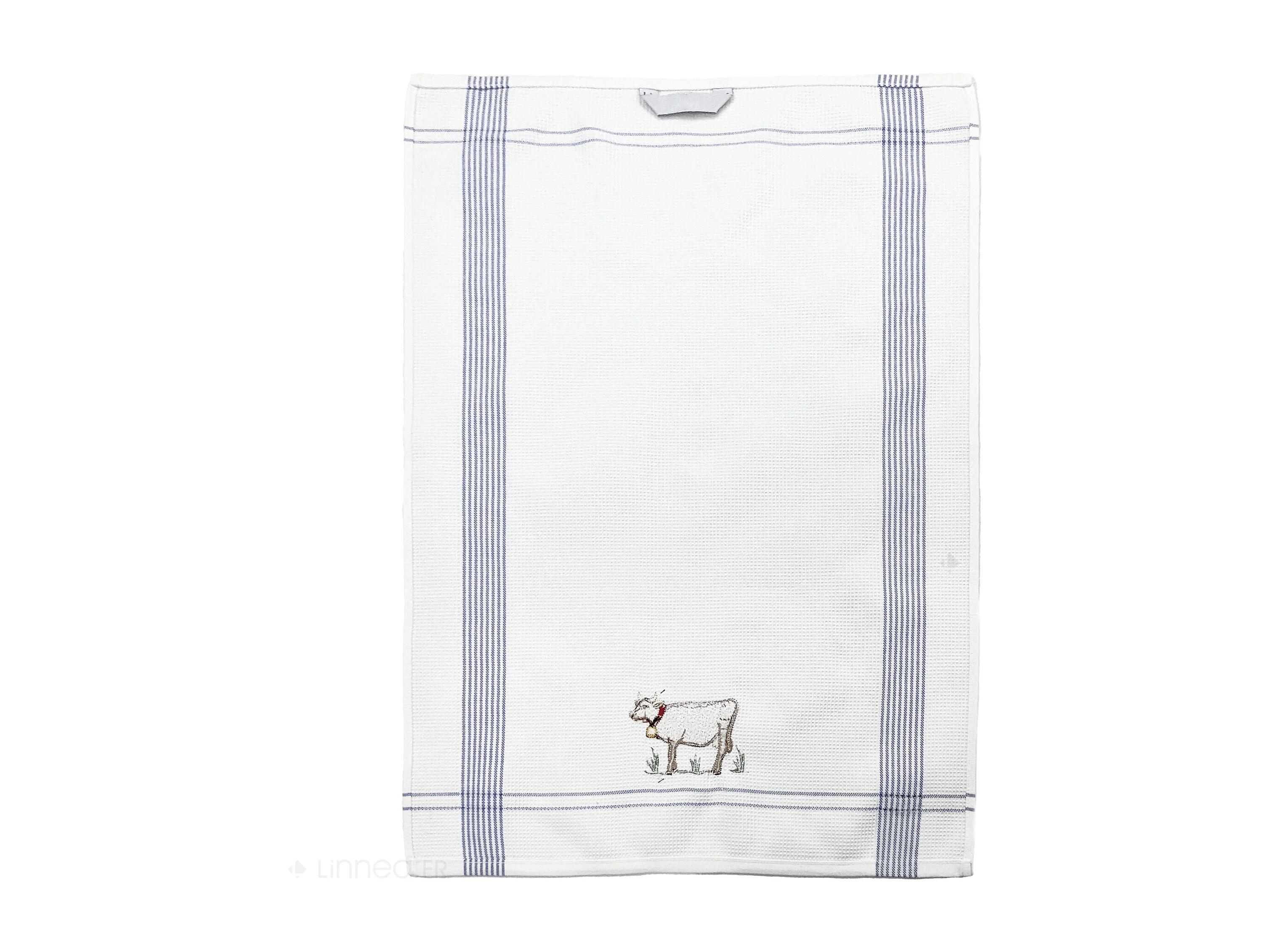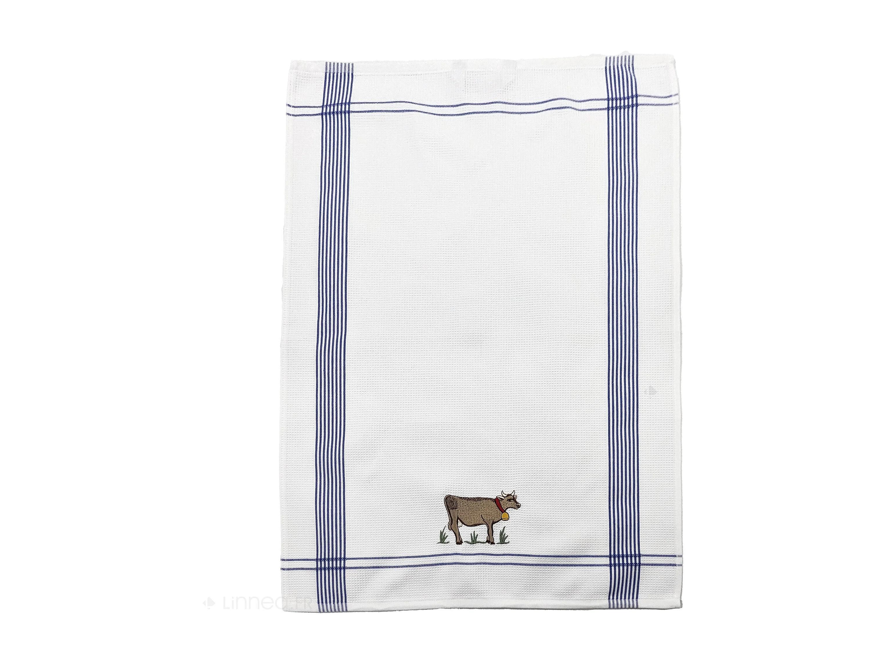Torchon de cuisine 50x70 cm WAFFLE BRODÉ coton bleu broderie vache