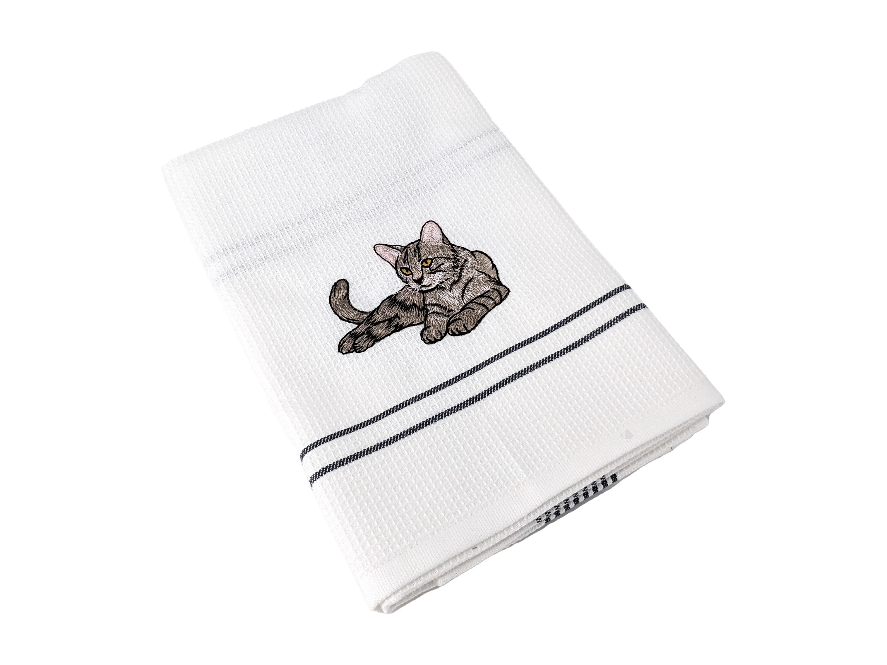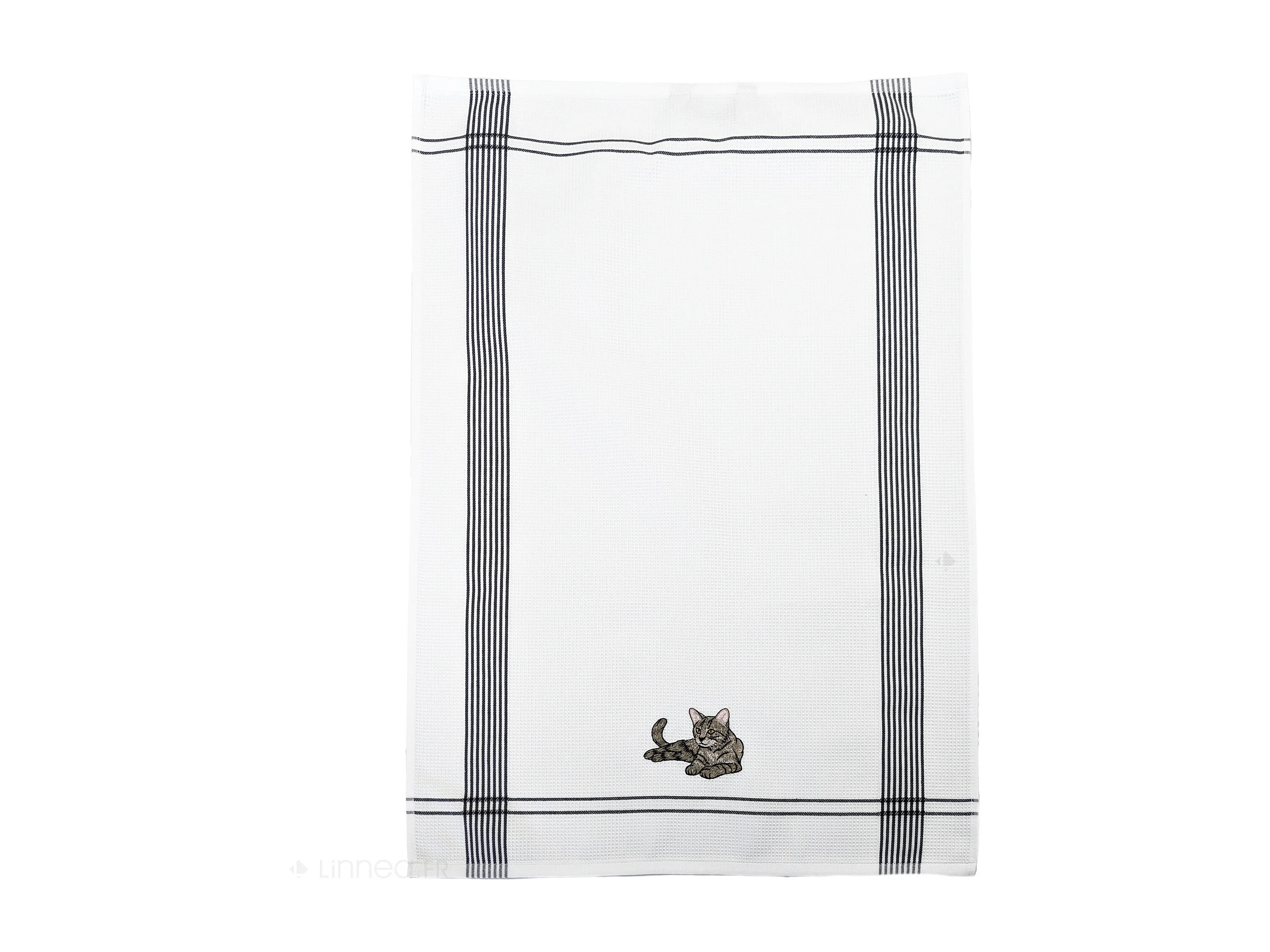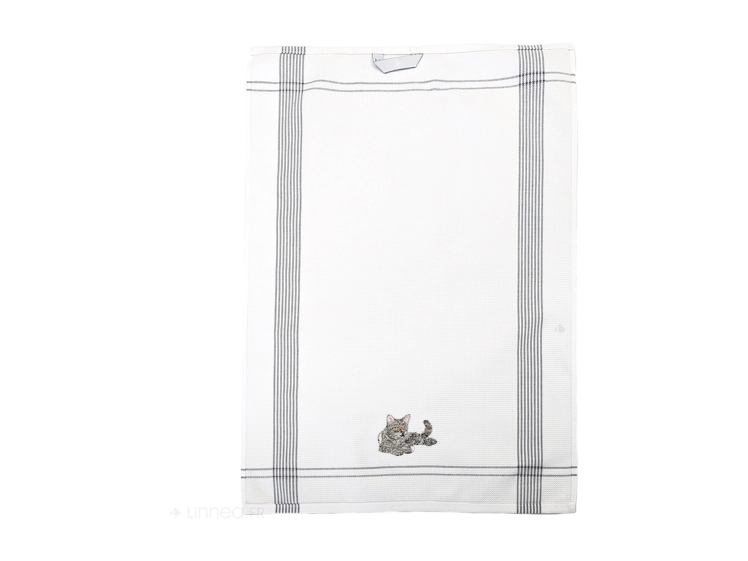 Torchon de cuisine 50x70 cm WAFFLE BRODÉ coton gris broderie chat