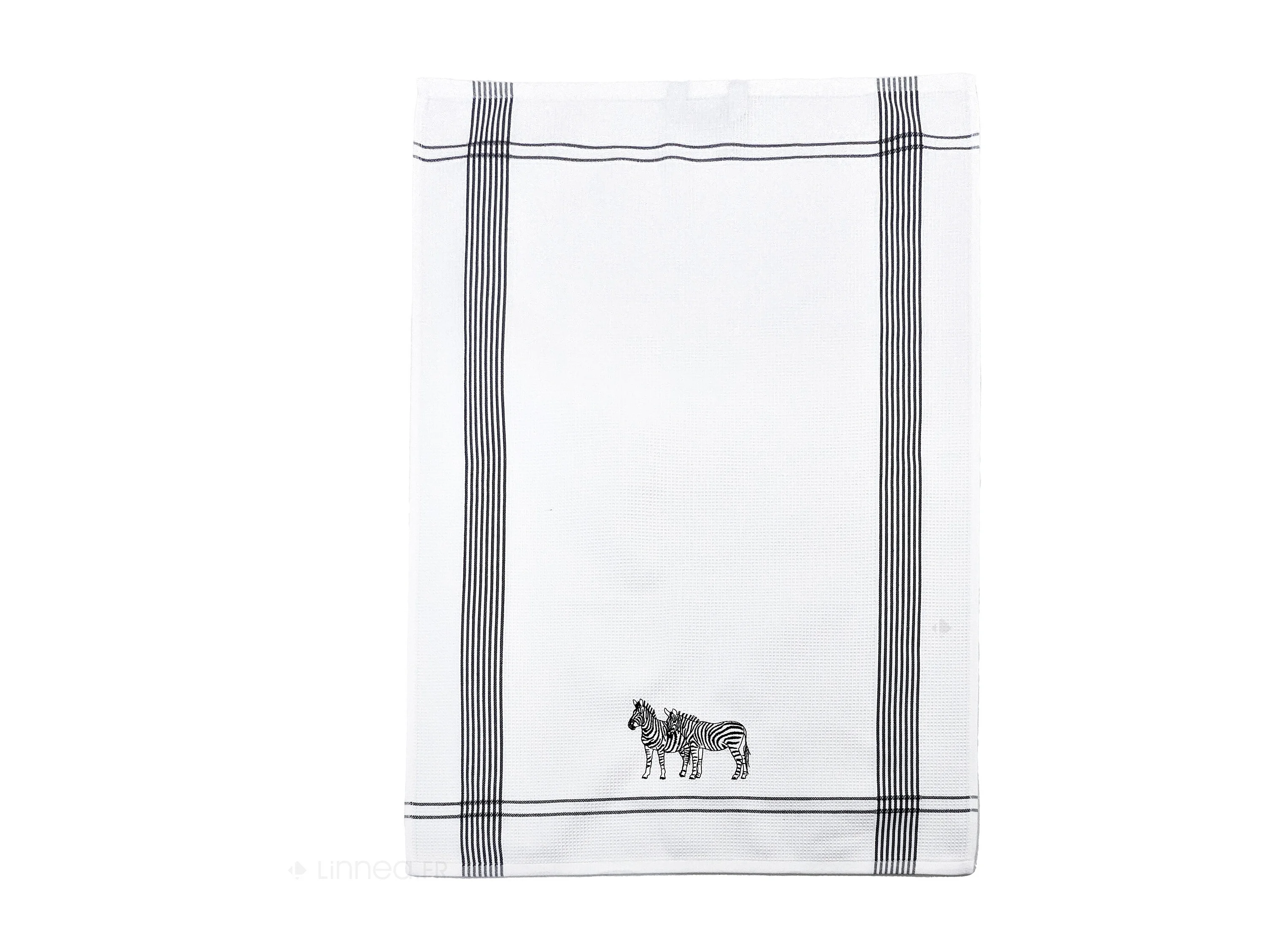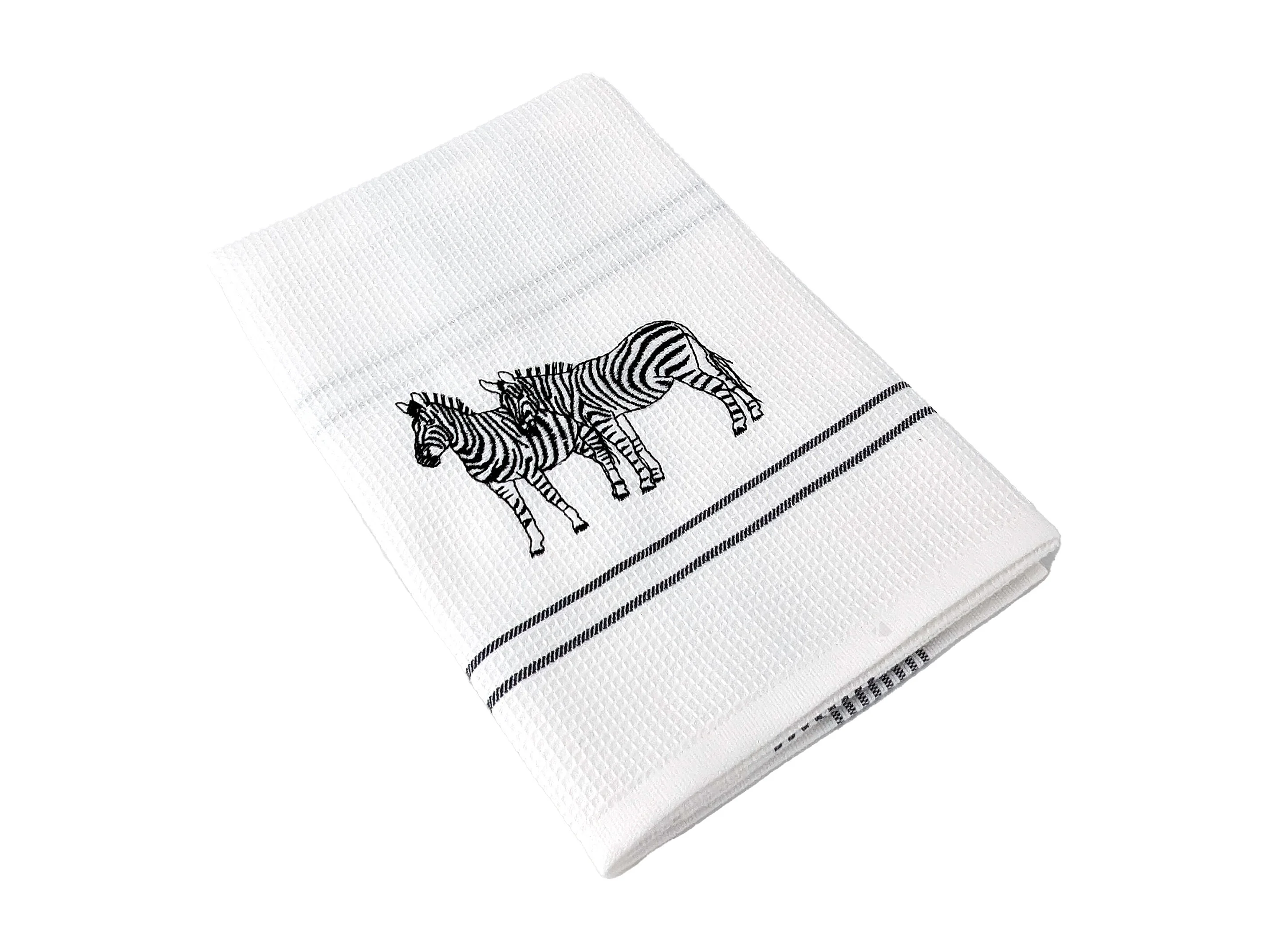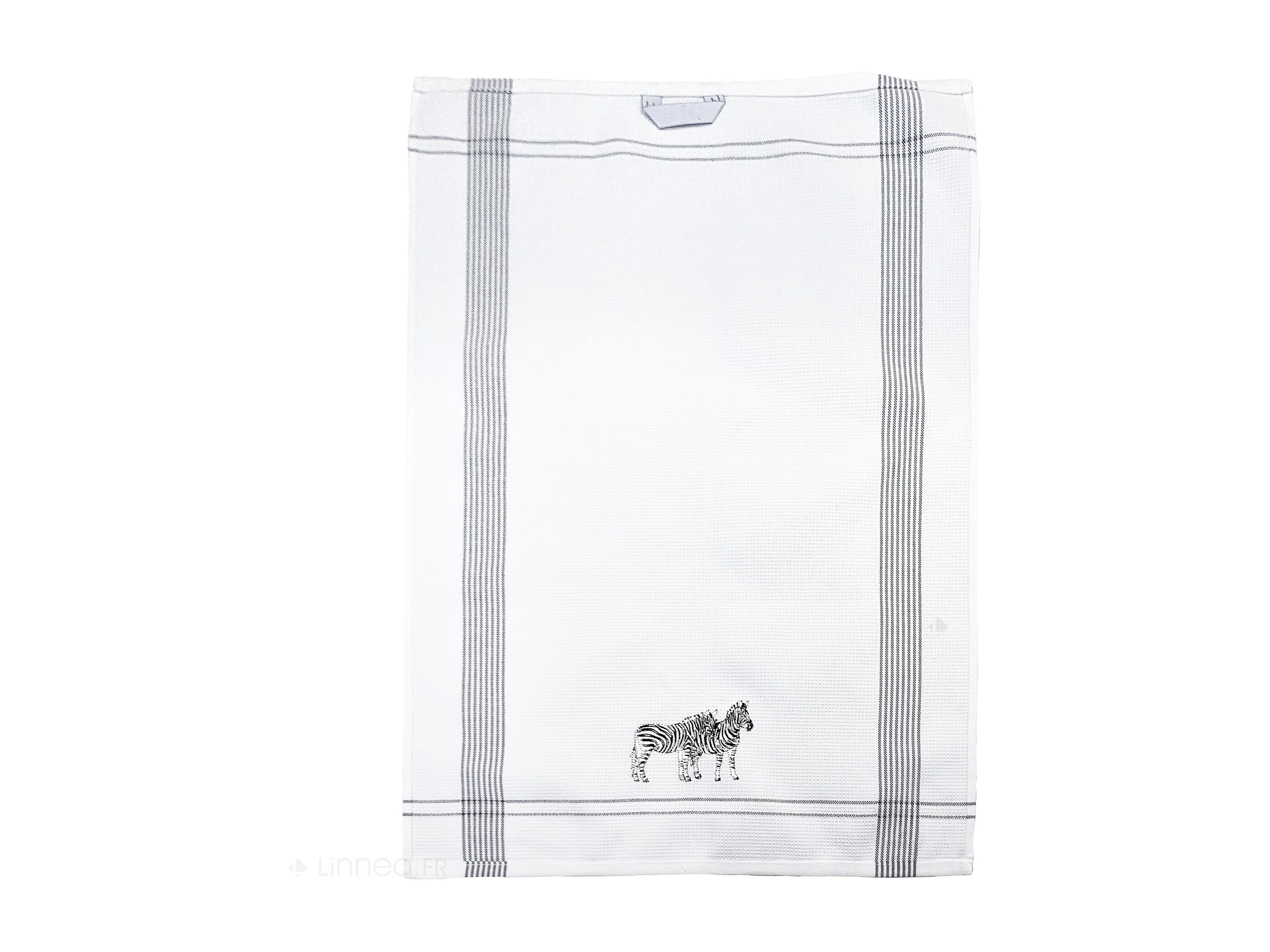 Torchon de cuisine 50x70 cm WAFFLE BRODÉ coton gris broderie zèbres