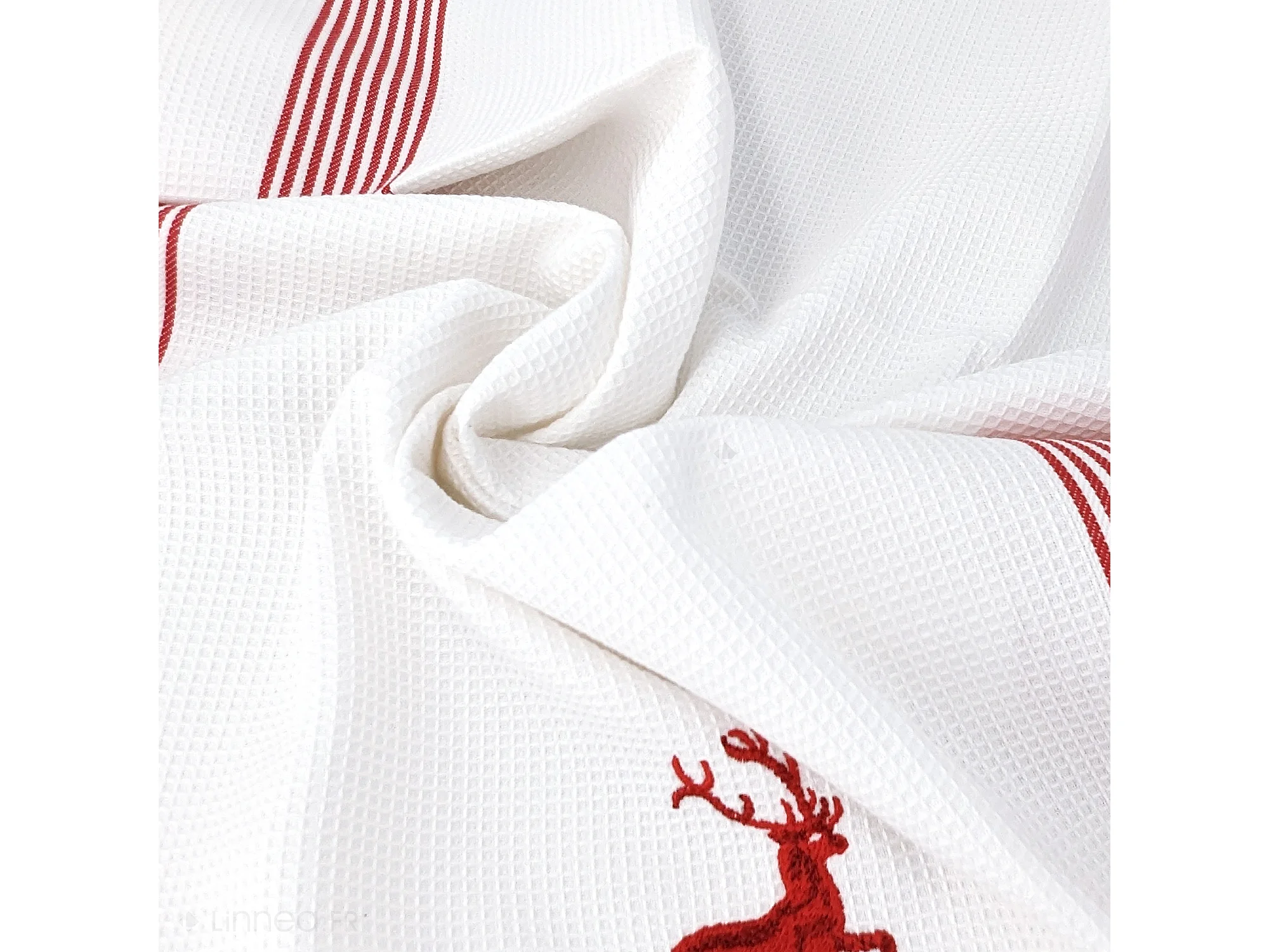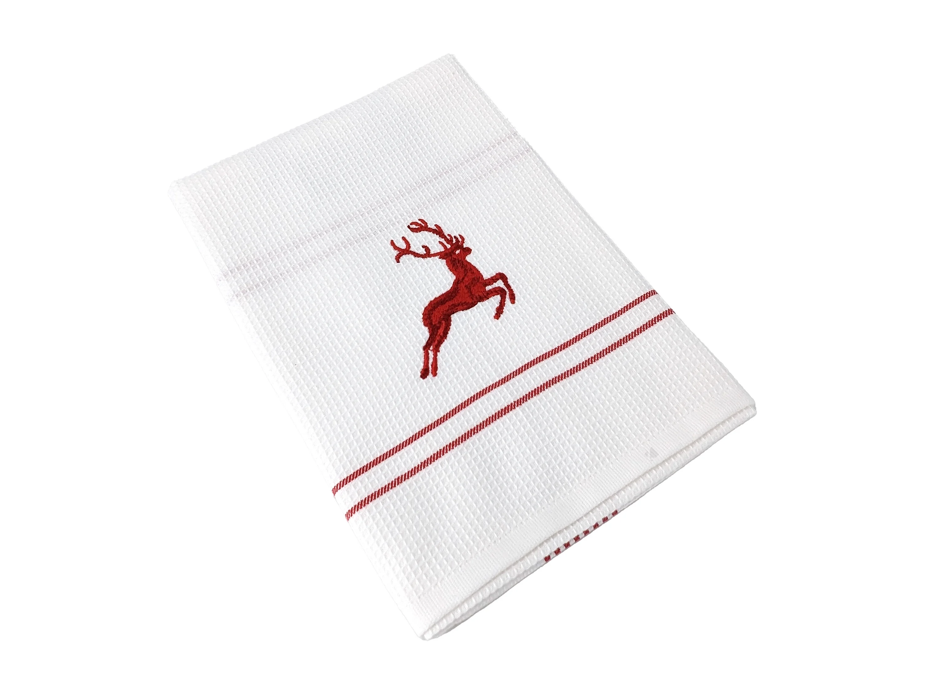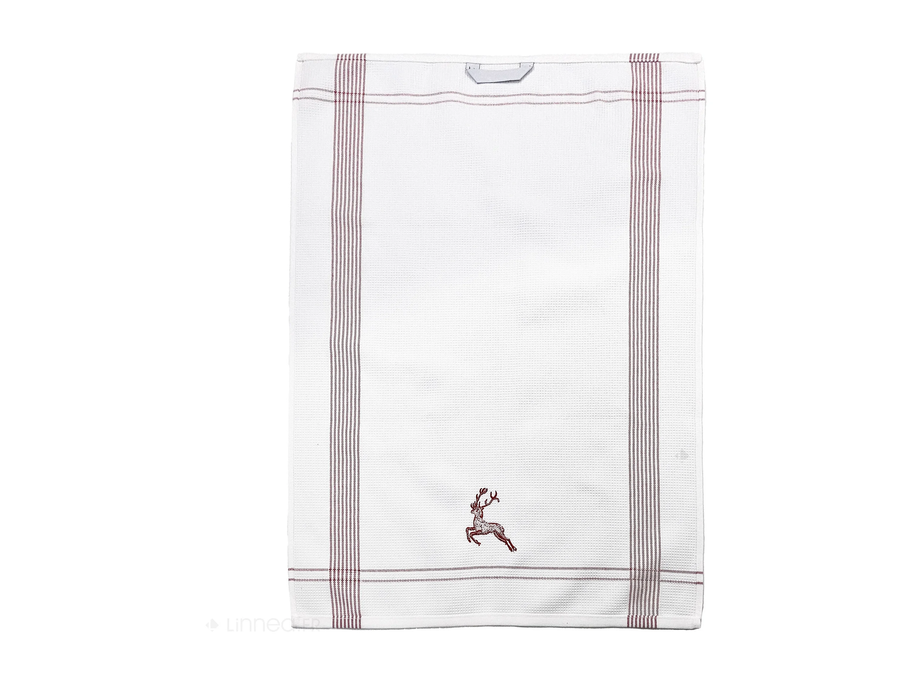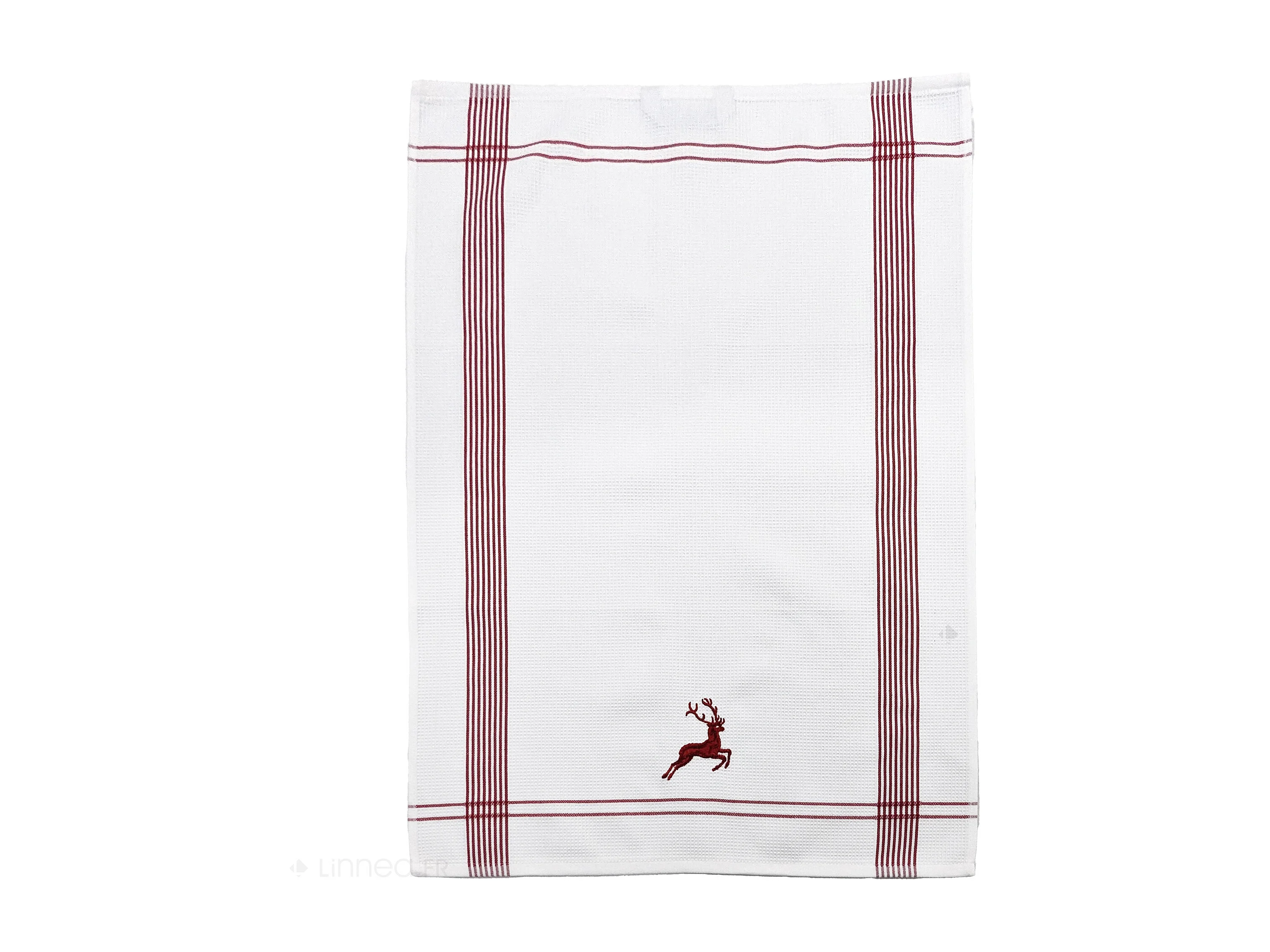 Torchon de cuisine 50x70 cm WAFFLE BRODÉ coton rouge broderie cerf