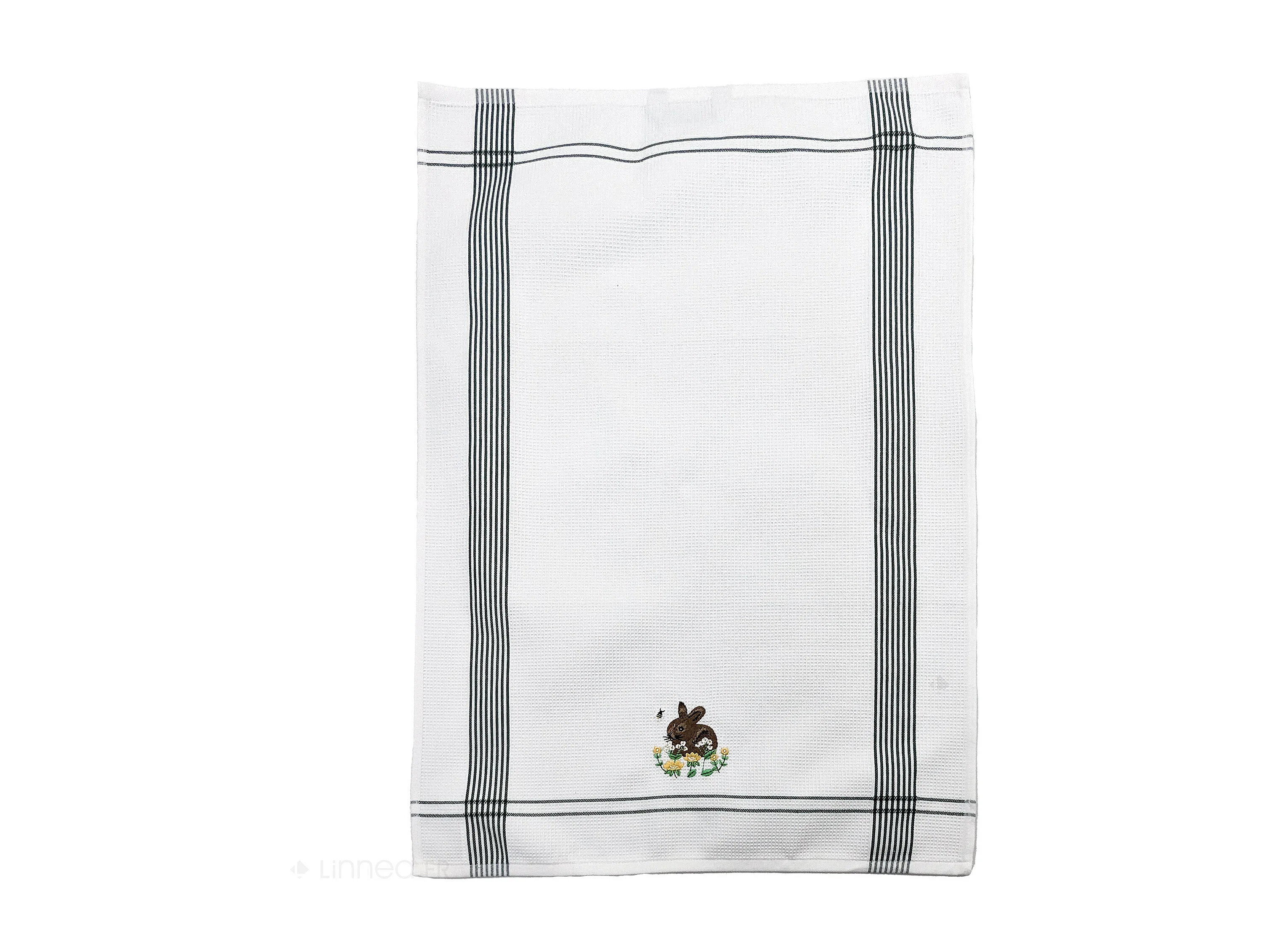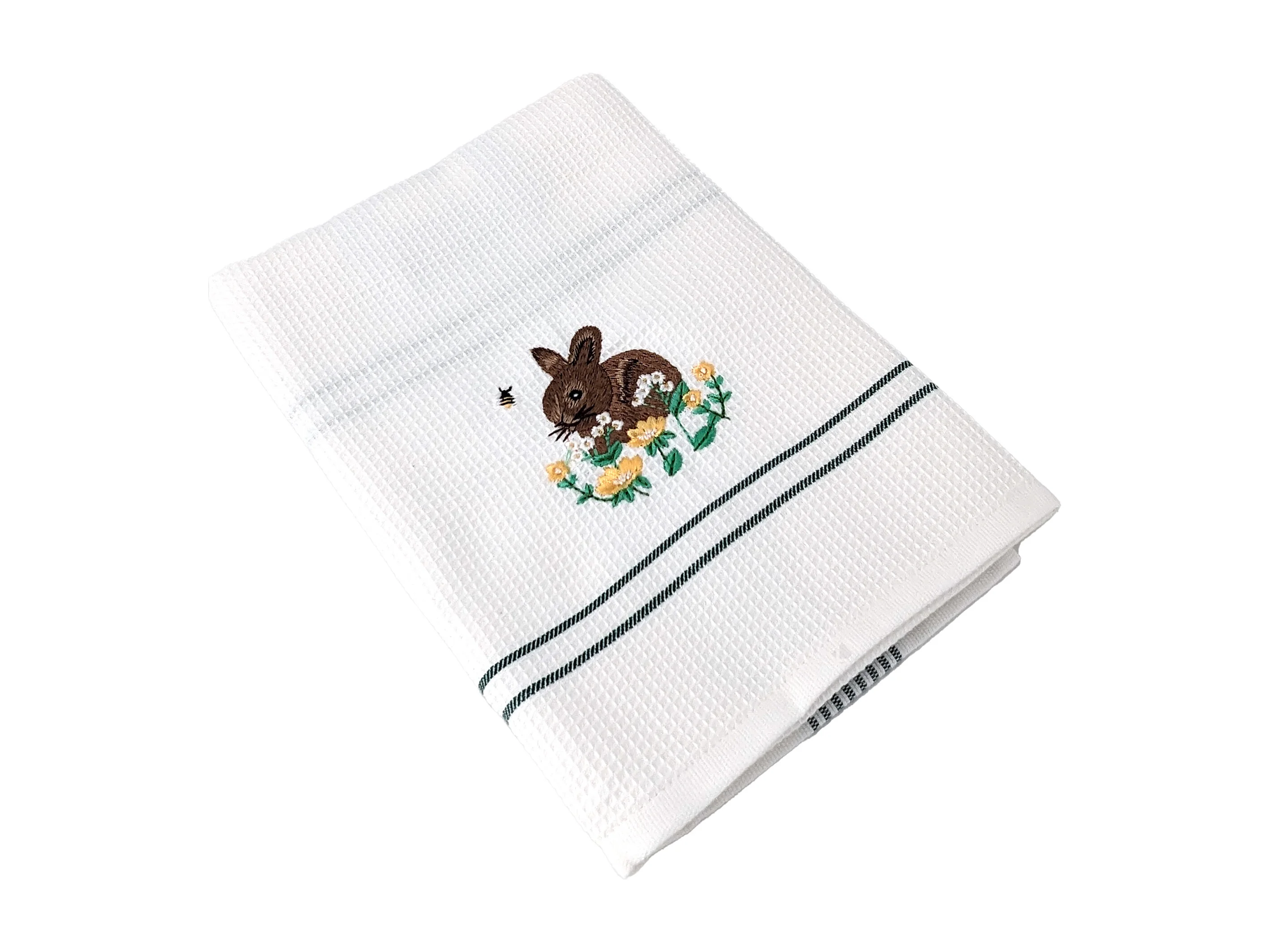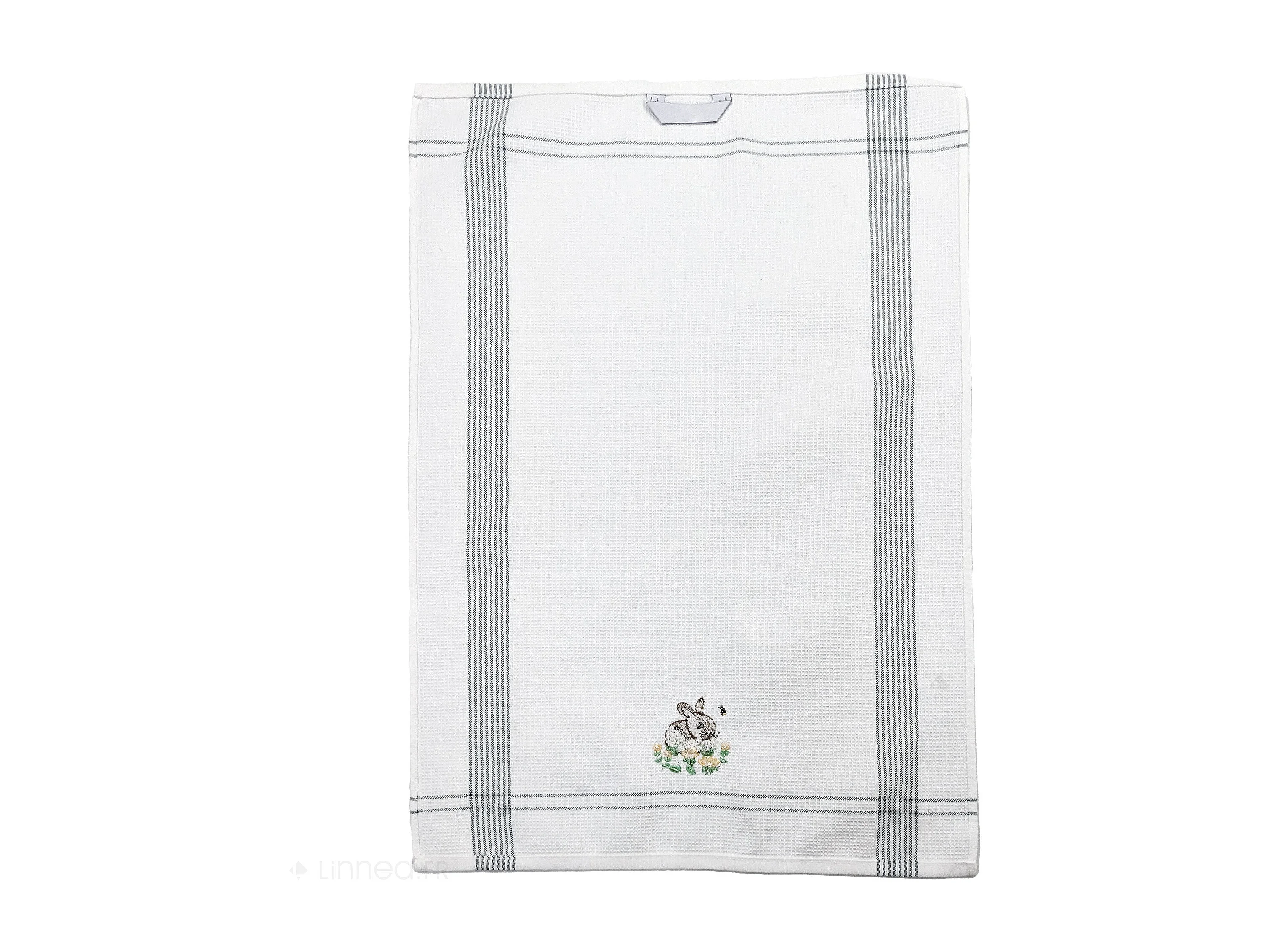 Torchon de cuisine 50x70 cm WAFFLE BRODÉ coton vert broderie lapin