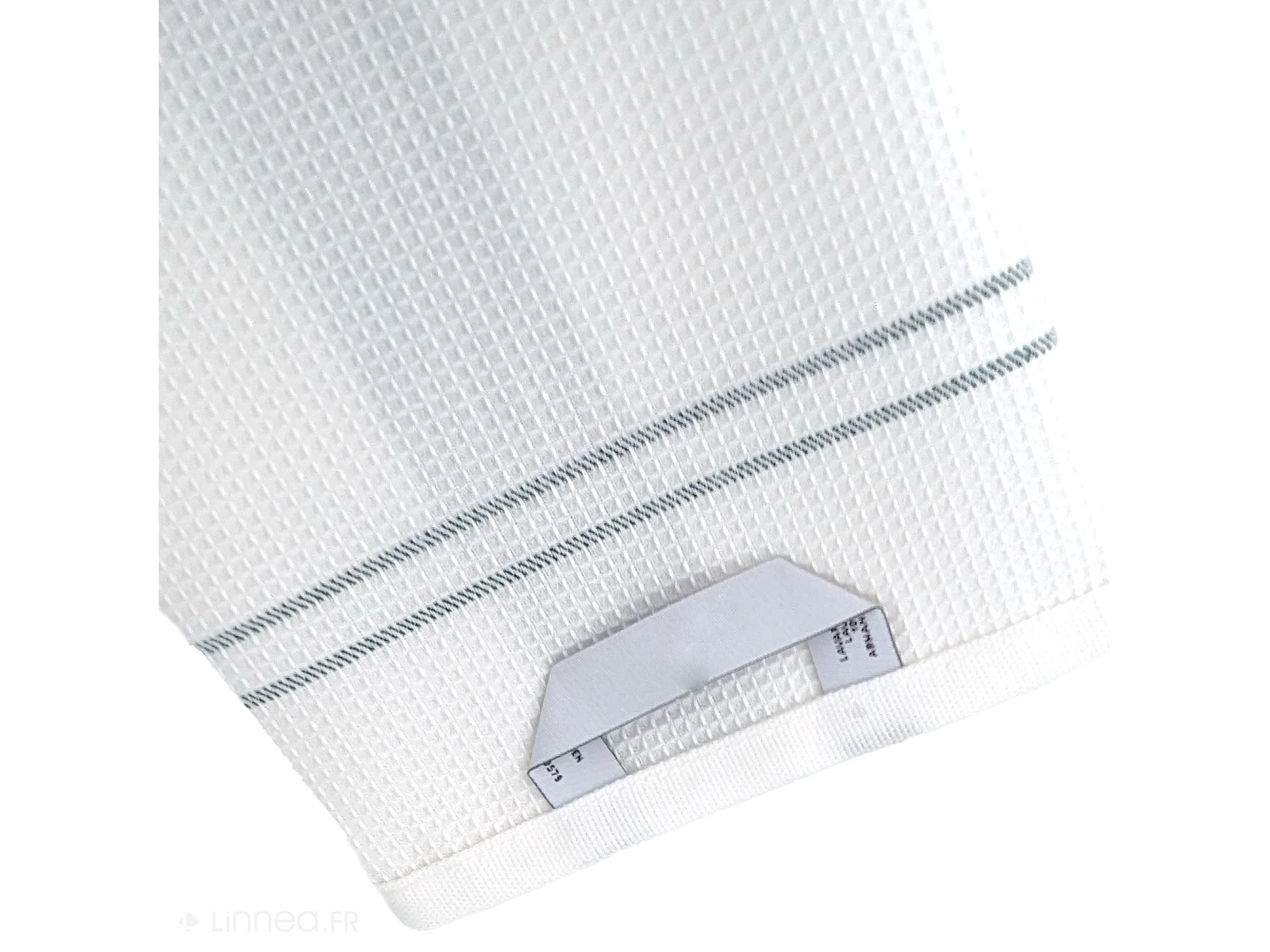 Torchon de cuisine 50x70 cm nid d'abeille WAFFLE PIQUET blanc filet vert