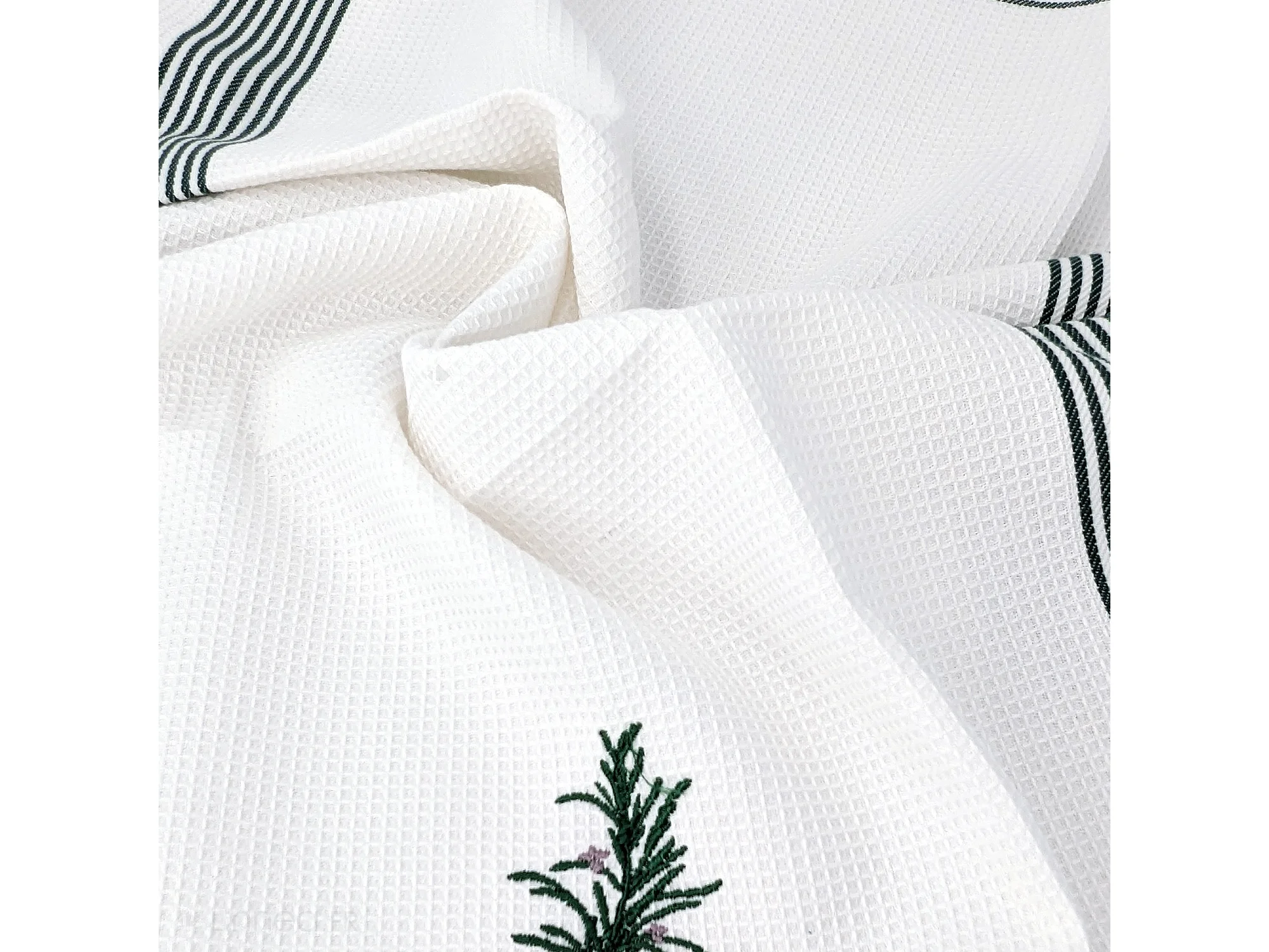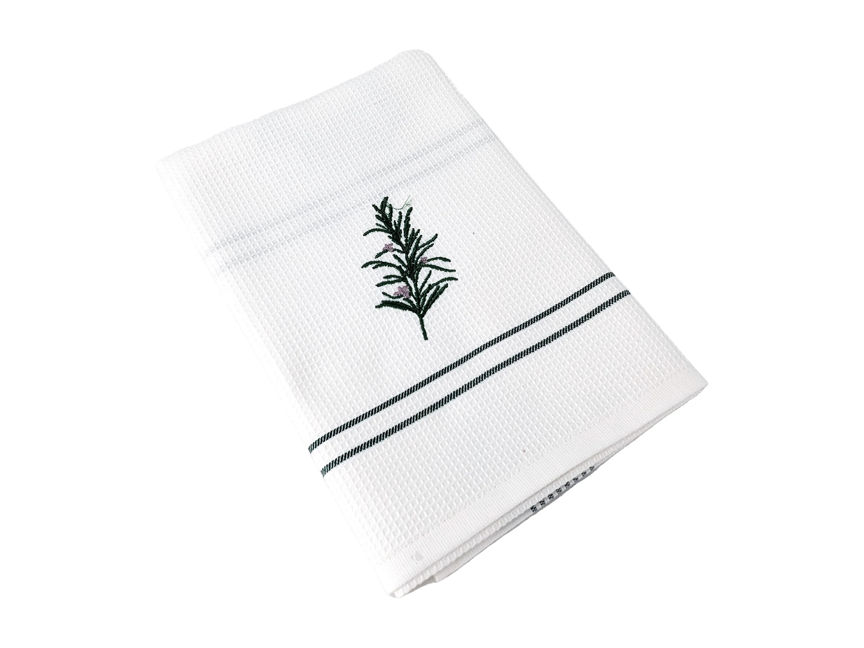 Torchon de cuisine 50x70 cm WAFFLE BRODÉ coton vert broderie romarin