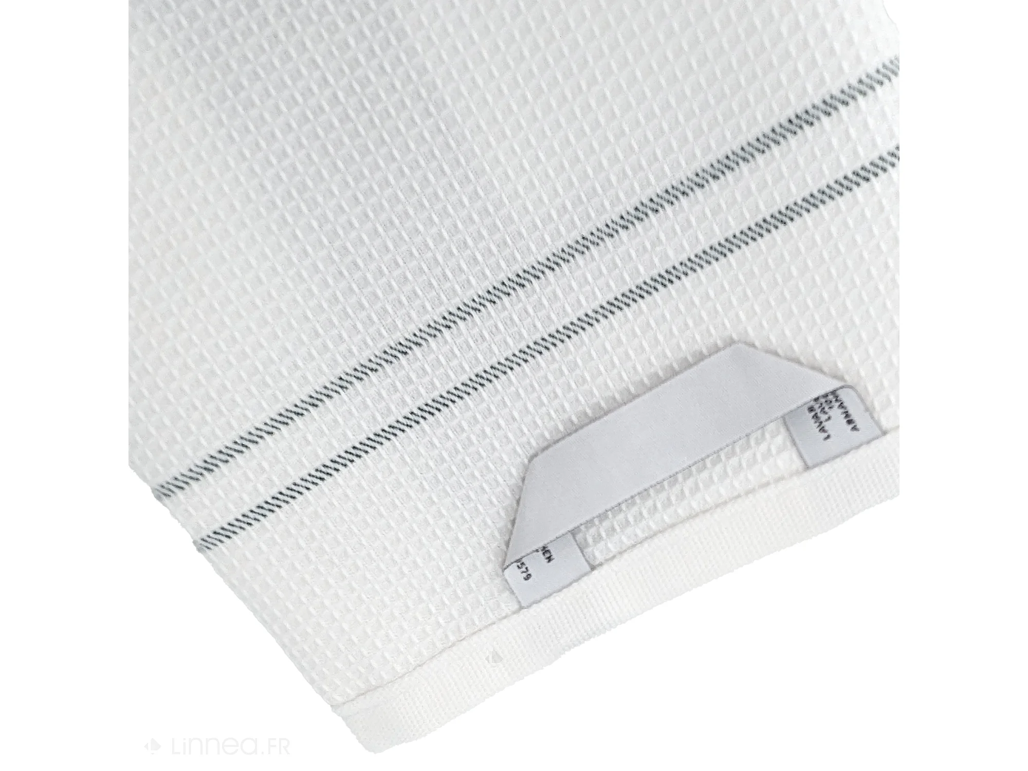 Torchon de cuisine 50x70 cm WAFFLE BRODÉ coton gris broderie merle