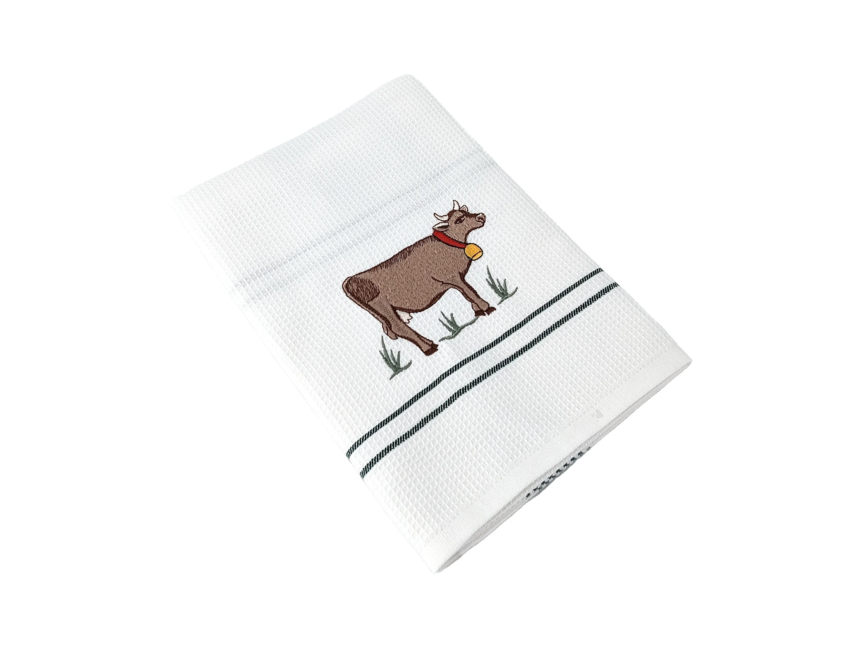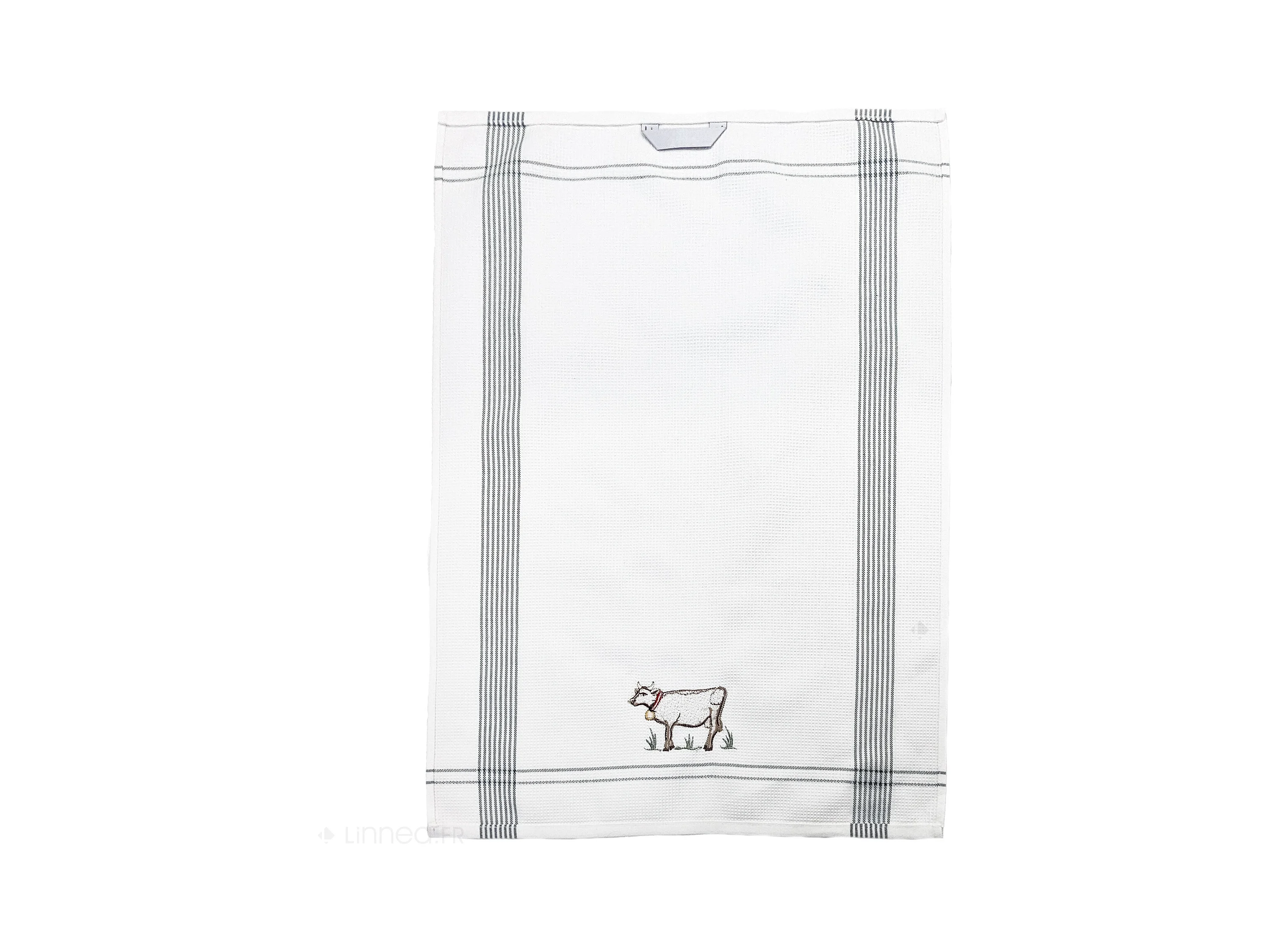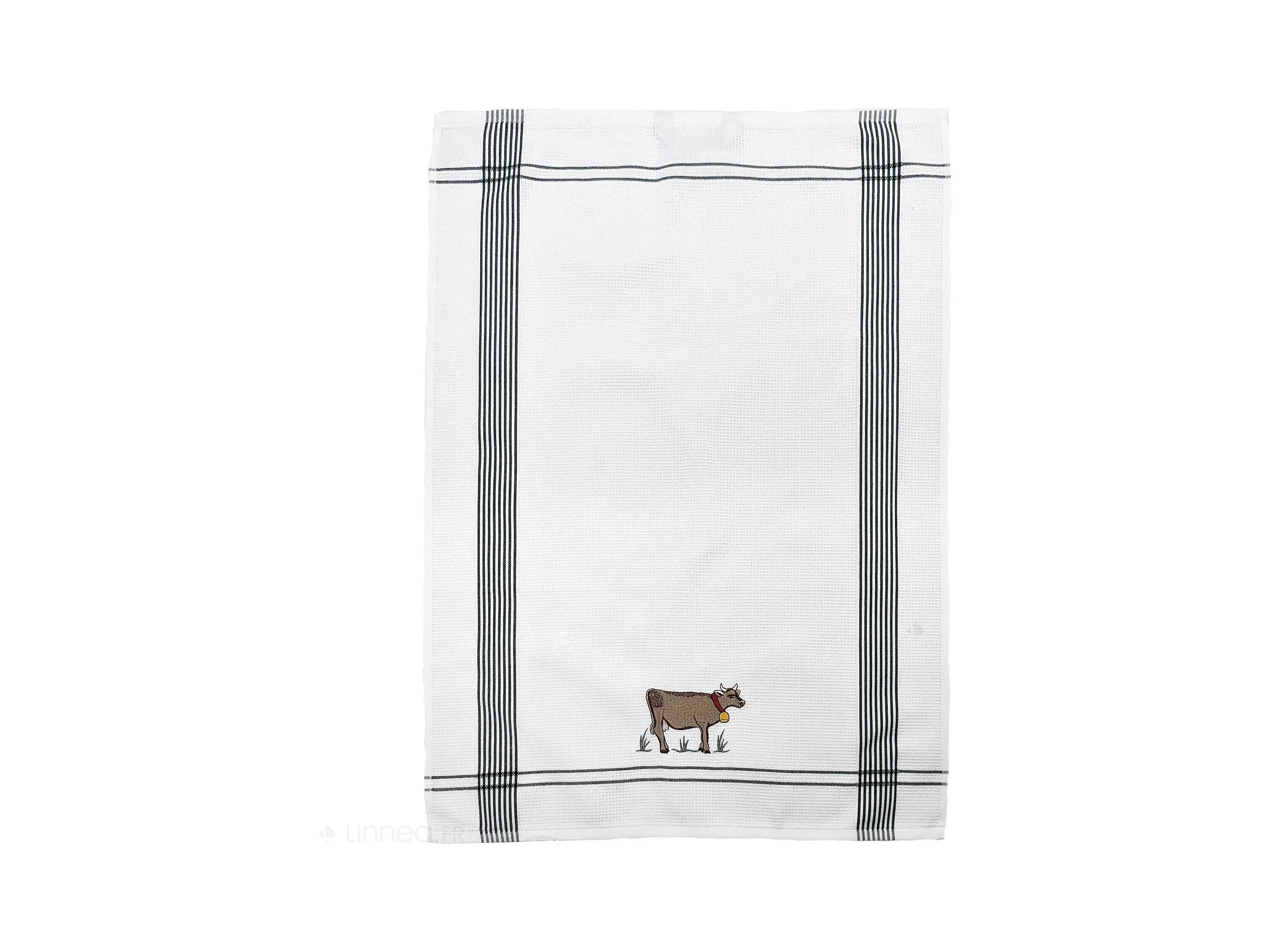 Torchon de cuisine 50x70 cm WAFFLE BRODÉ coton vert broderie vache