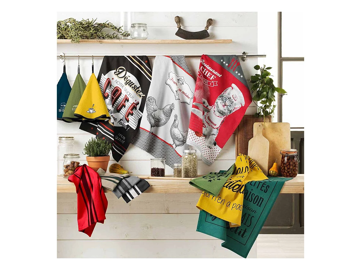 Lot de torchons de cuisine coton KENT anthracite et jaune, par Soleil d'ocre