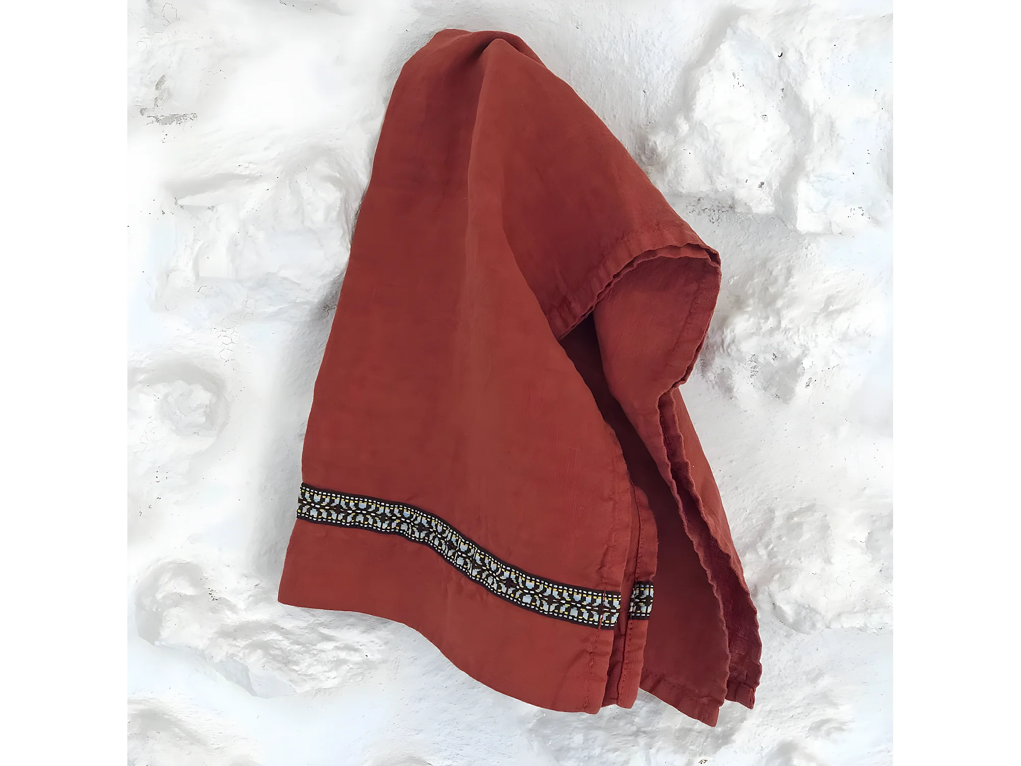 Torchon en lin lavé terracotta avec ruban Oslo - 40 x 60 cm