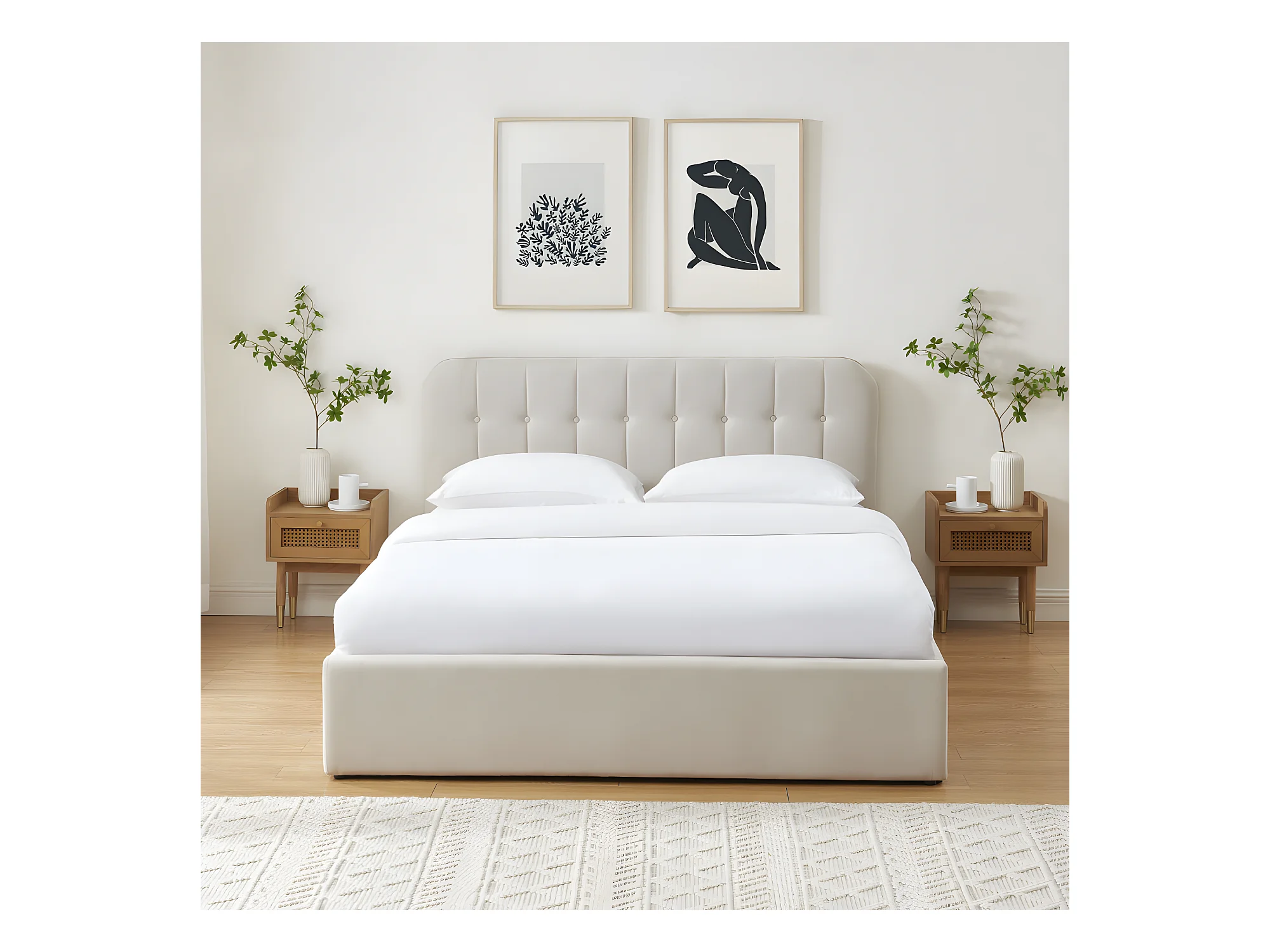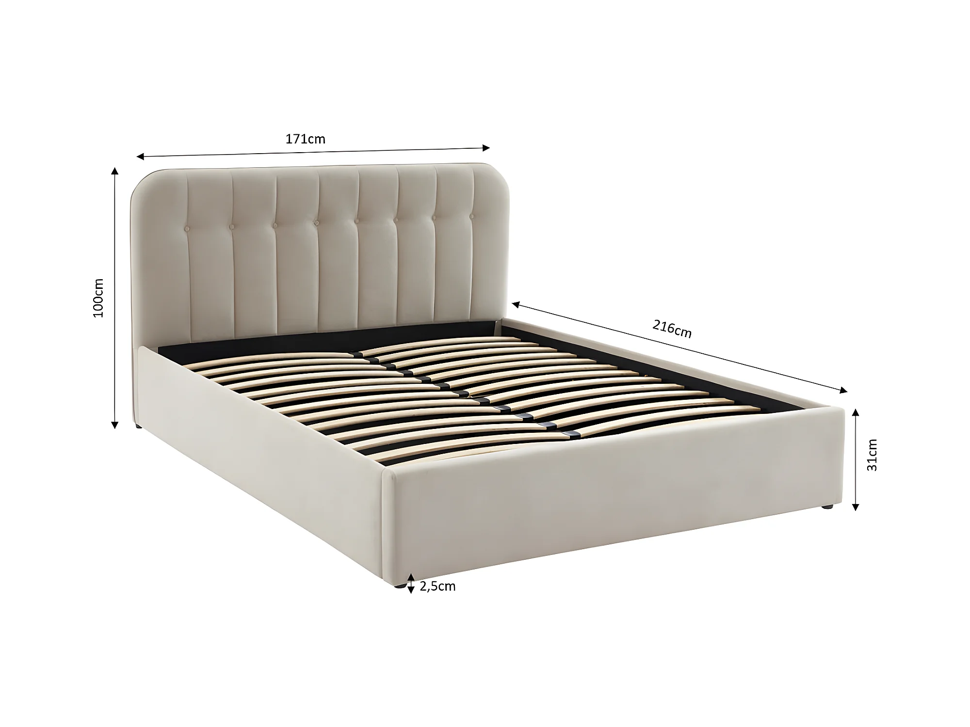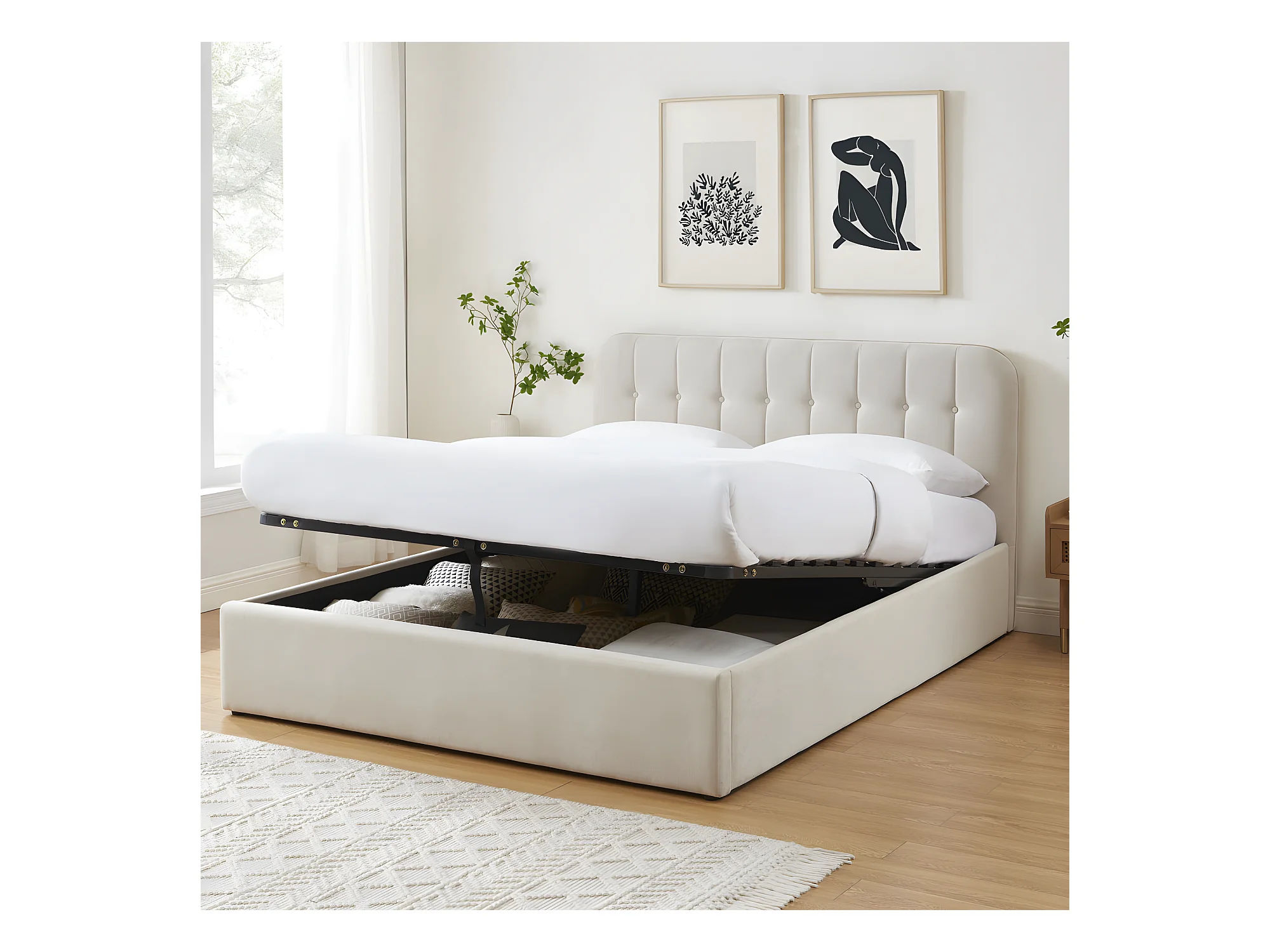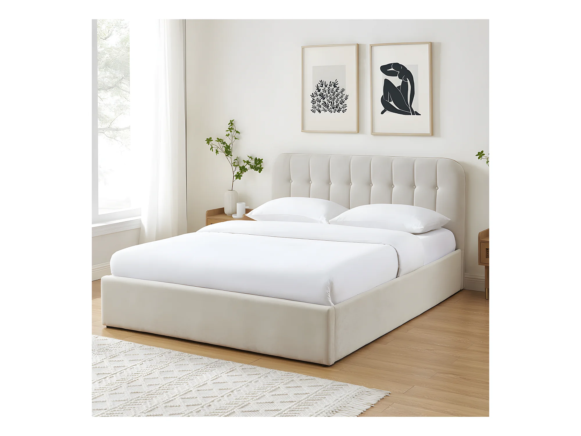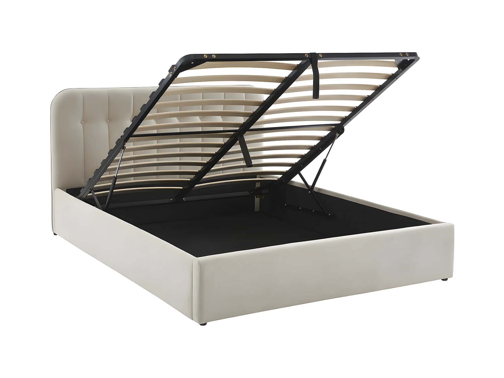 Torgo - Lit coffre matelassé en velours 160x200cm - Beige