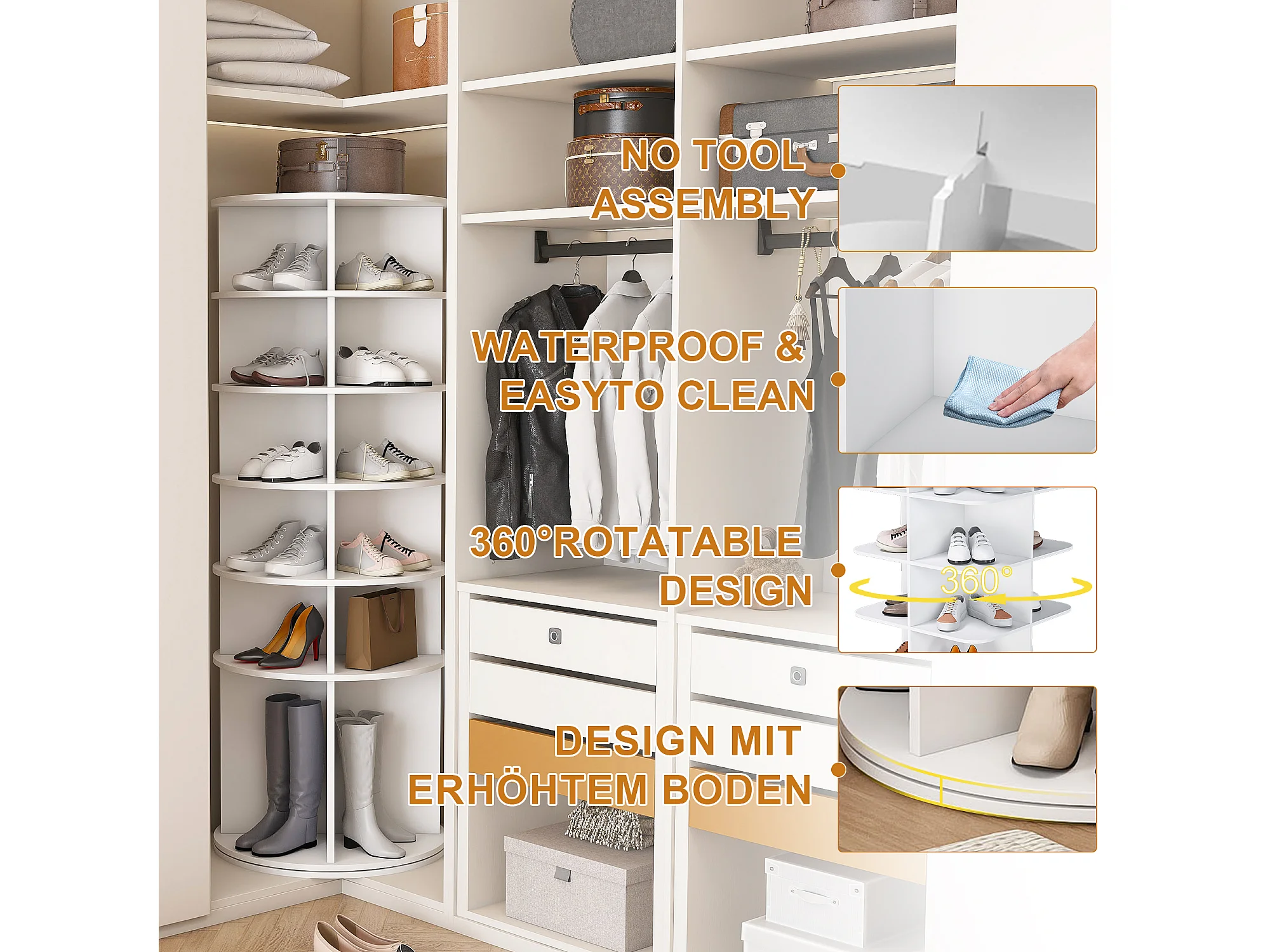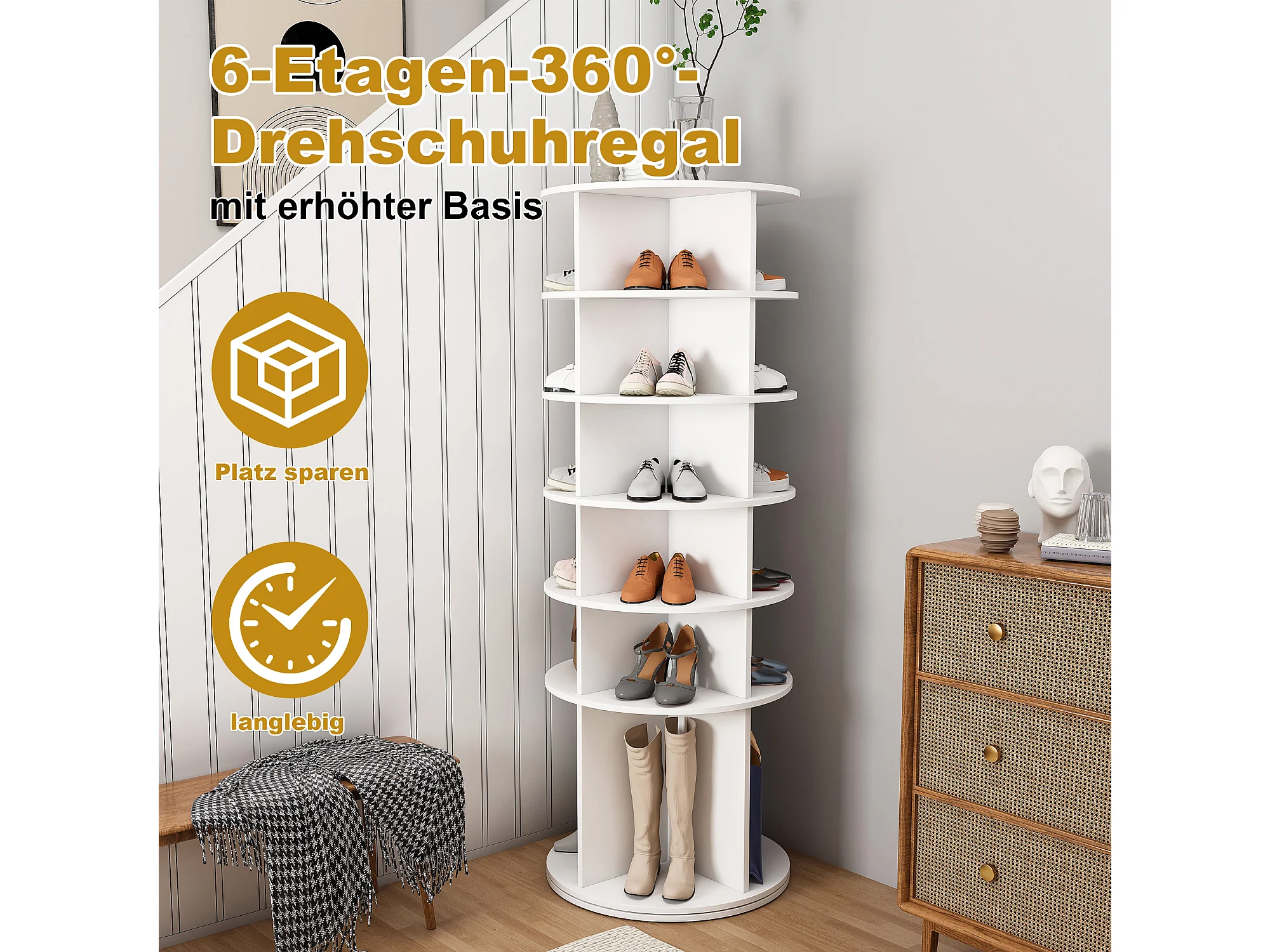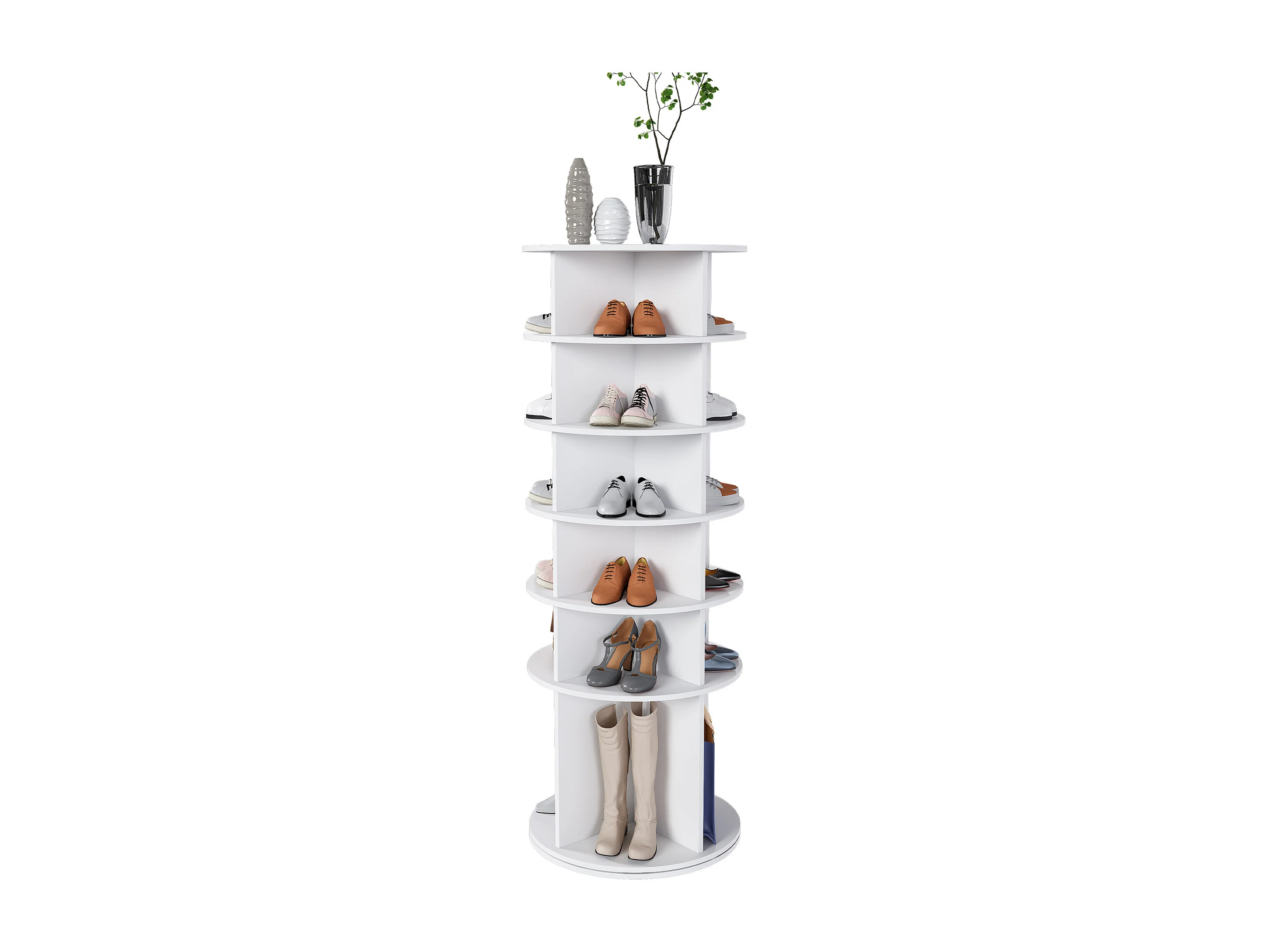 Tour à chaussures rotative avec 6 niveaux - Pour 24 paires - Blanc 60x60x161 cm