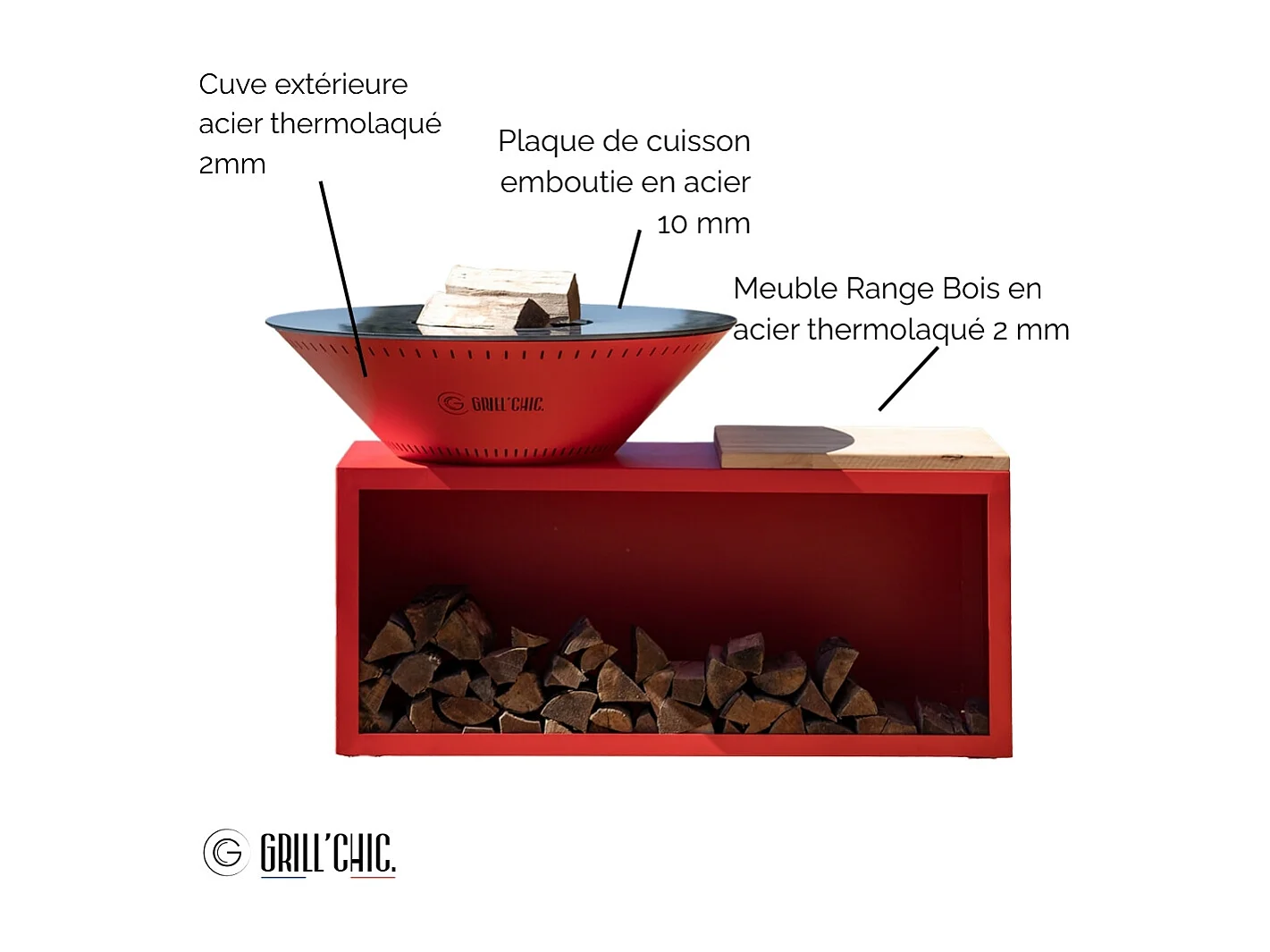 TRADITIONNEL Brasero Double Cuve Acier 83x90cm - Rouge - Petit Modèle le dynamique et fonctionnel, idéal pour des moments conviviaux