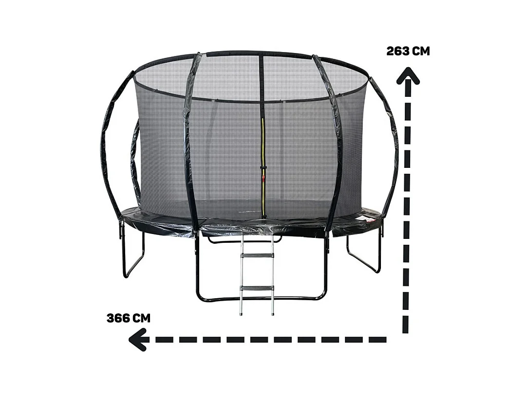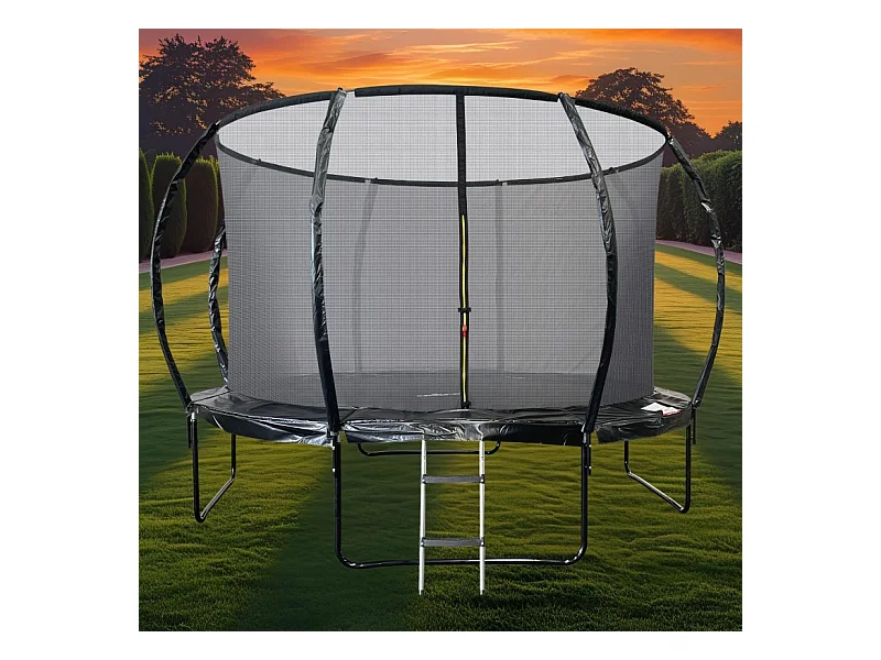 Trampoline 12Ft ø 366 cm noire avec Echelle, Protection et Filet de sécurité