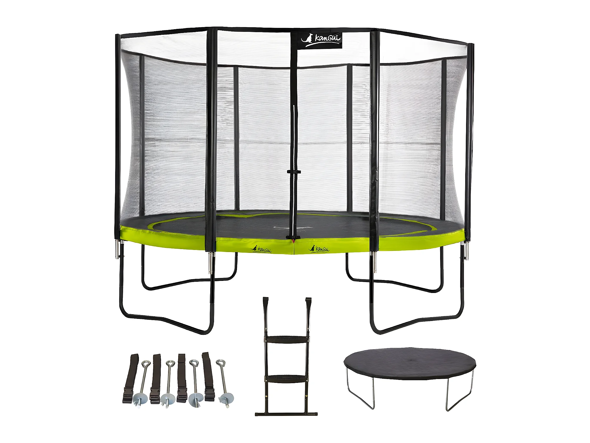 Kangui - Trampoline de jardin rond 430 cm + filet + échelle + bâche + kit ancrage | PUNCHI Vert 430