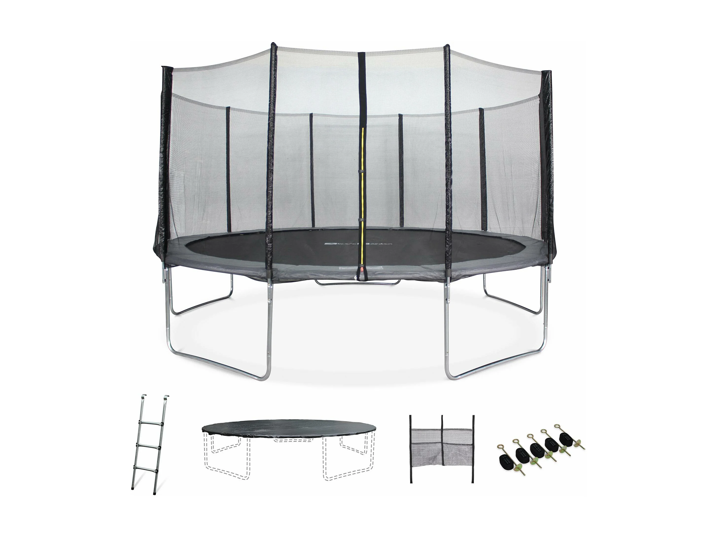 Trampoline 460cm gris avec filet de protection. échelle. bâche. filet pour chaussures. kit d'ancrage - Neptune XXL - Trampoline de jardin 460 cm 4m | Qualité