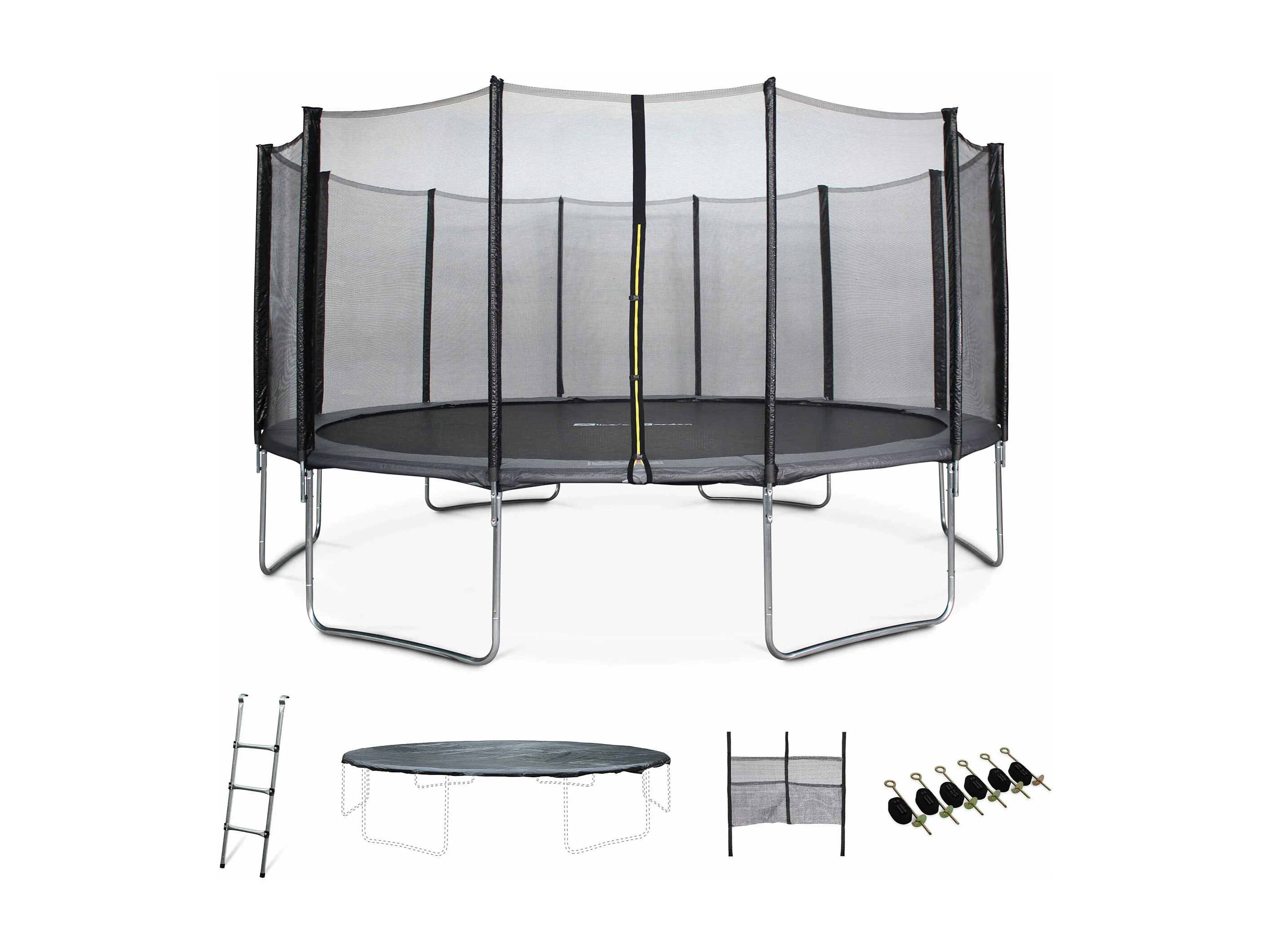 Trampoline 490cm gris avec filet de protection. échelle. bâche. filet pour chaussures. kit d'ancrage - Jupiter XXL - Trampoline de jardin 490 cm 4m|Qualité