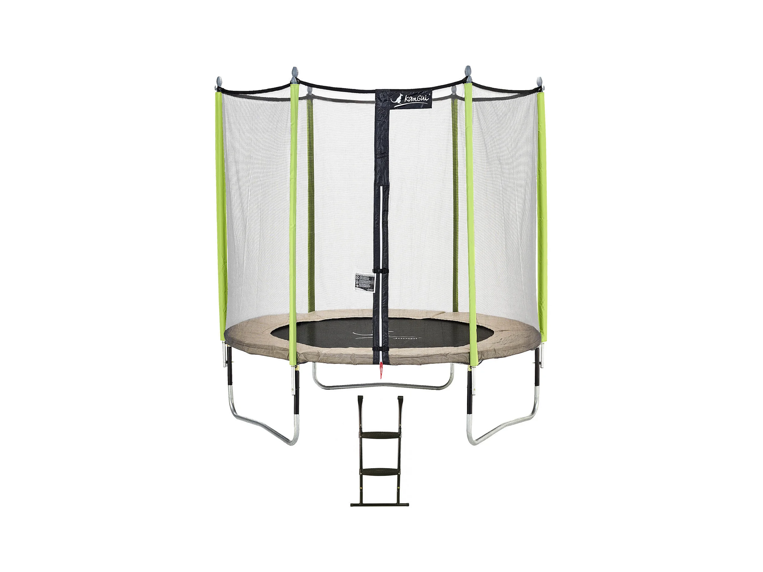 Kangui - Trampoline de jardin 244 cm + filet de sécurité + échelle JUMPI Taupe/Vert 250
