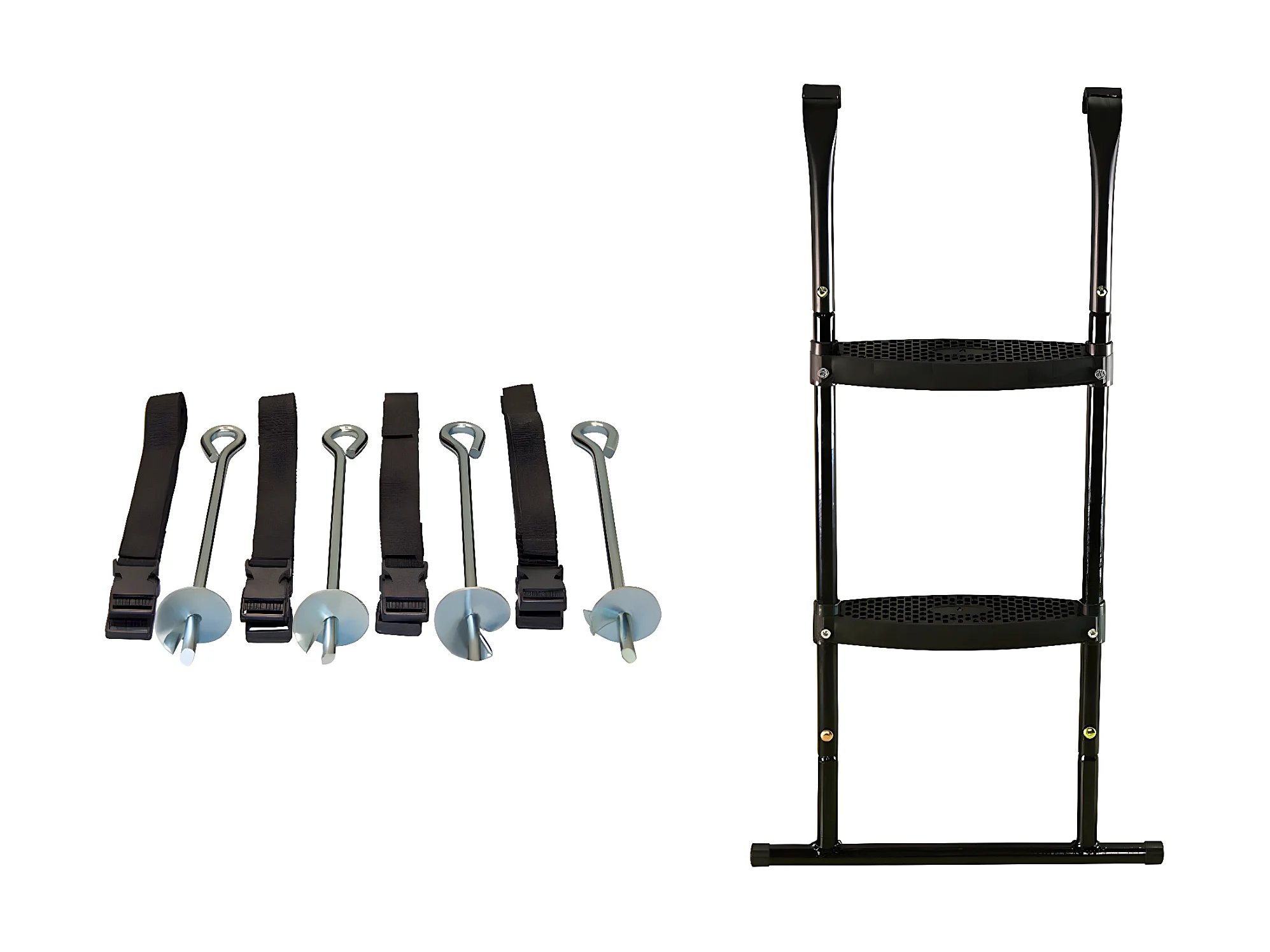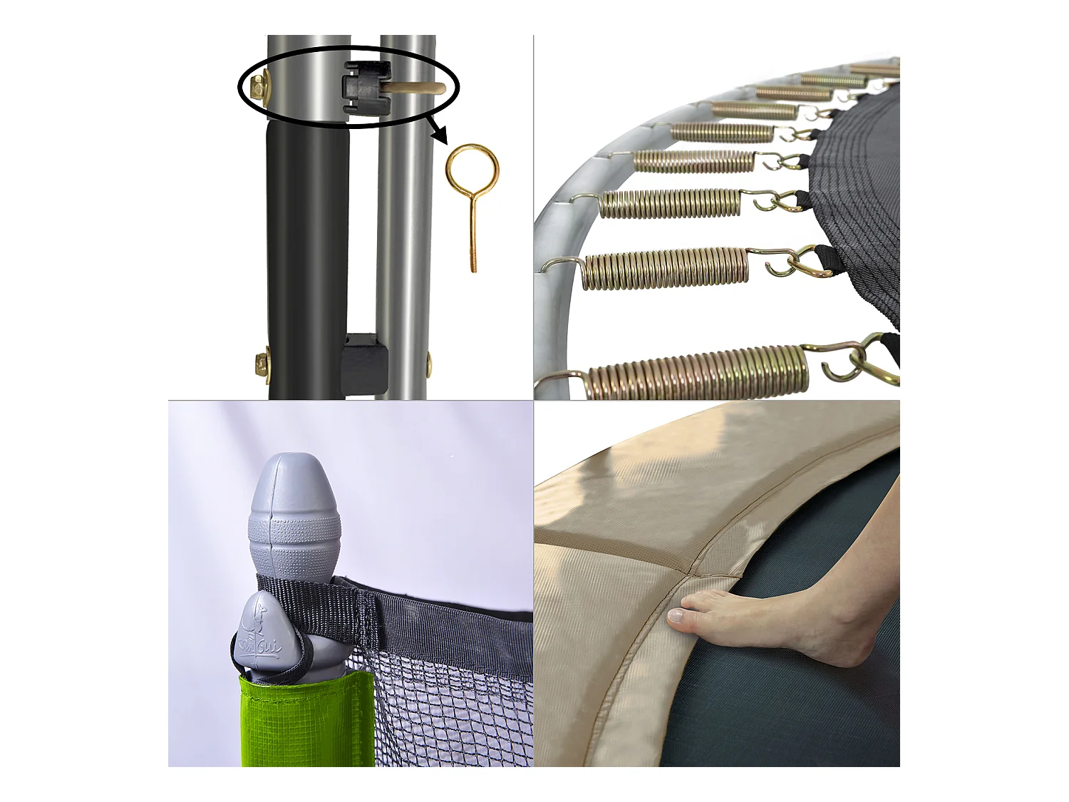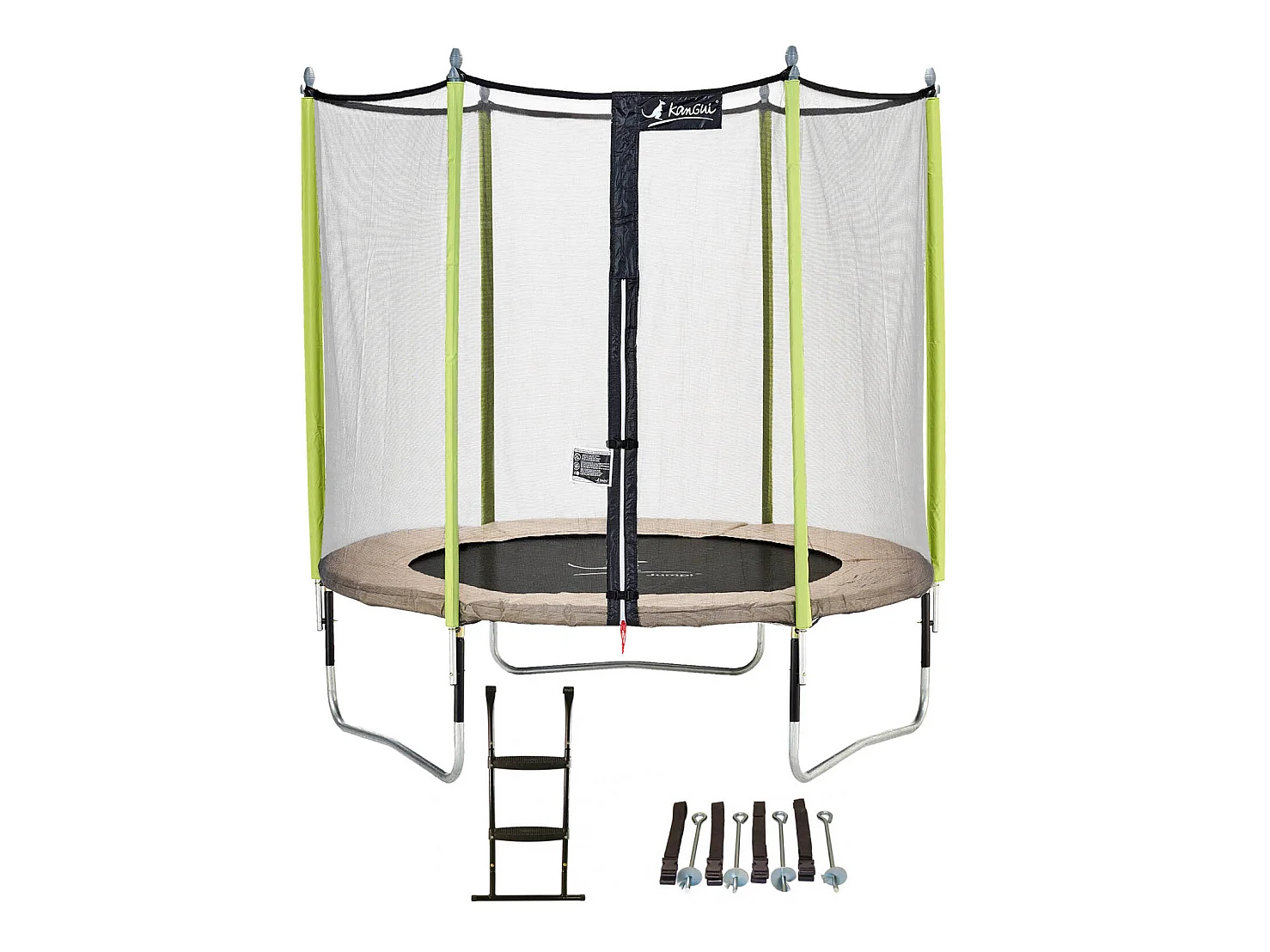 Kangui - Trampoline de jardin 244 cm + filet de sécurité + échelle + kit d'ancrage JUMPI Taupe/Vert 250