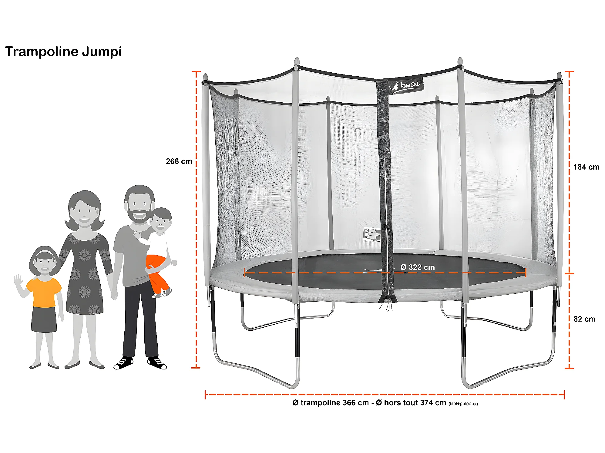 Kangui - Trampoline de jardin 365 cm + filet de sécurité + échelle + bâche de protection JUMPI Vert/Noir 360