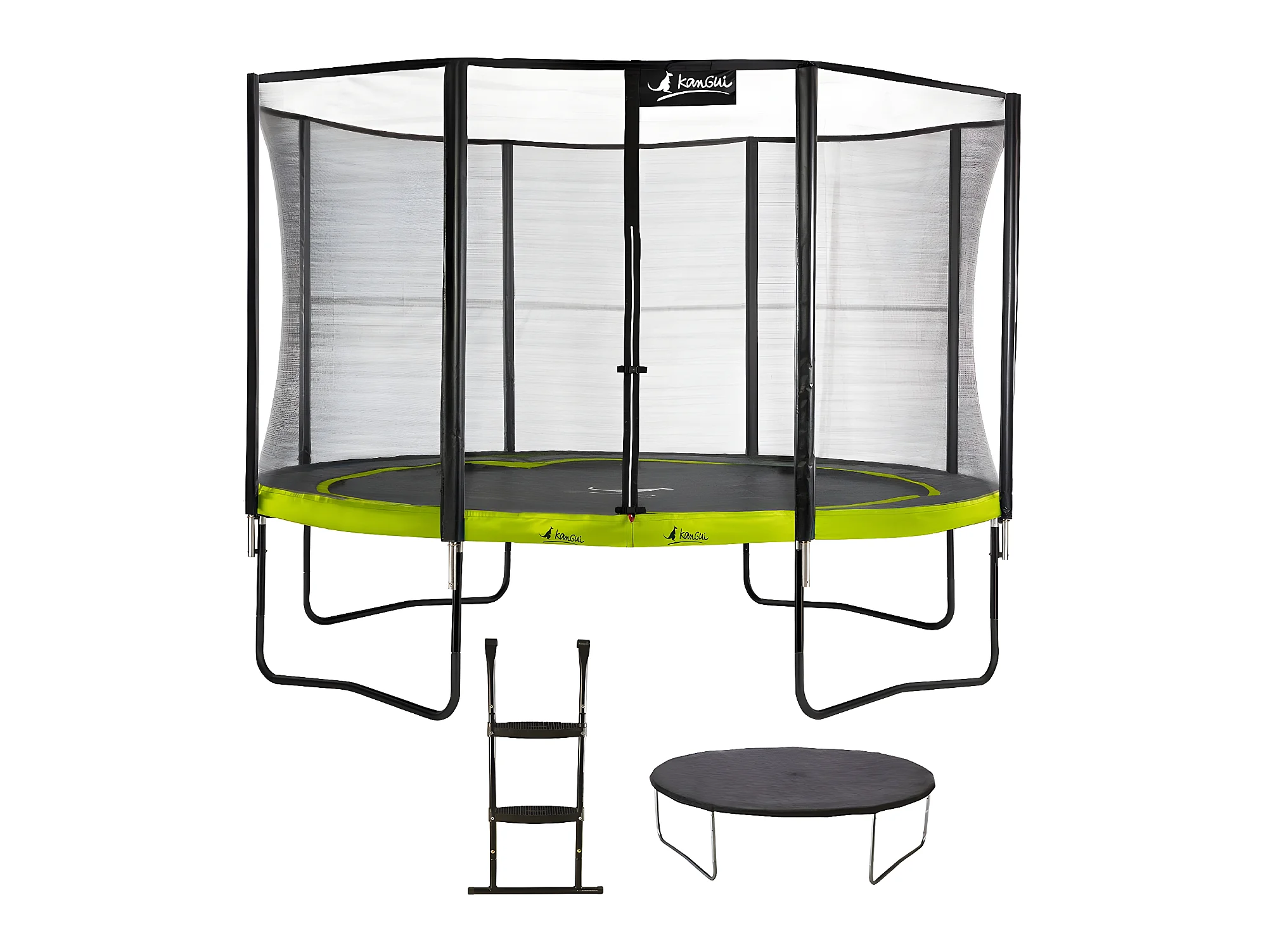 Kangui - Trampoline de jardin 365 cm + filet de sécurité + échelle + bâche de protection | PUNCHI Vert 360