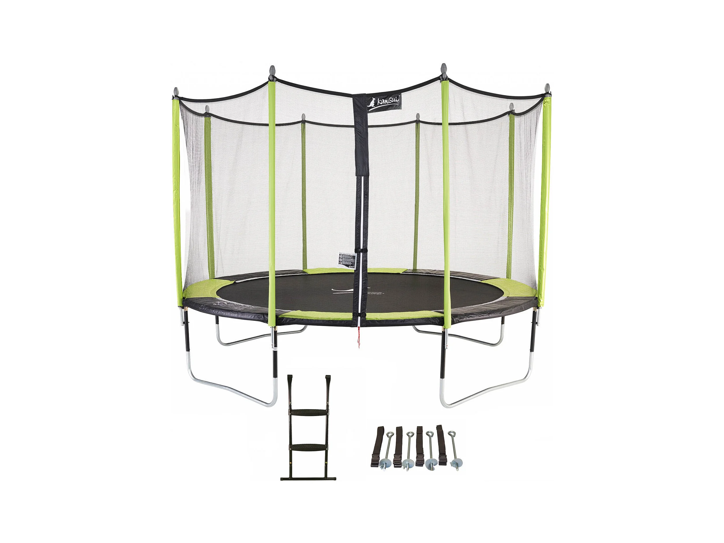 Kangui - Trampoline de jardin 426 cm + filet de sécurité + échelle + kit d'ancrage JUMPI Vert/Noir 430