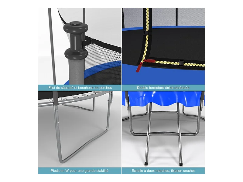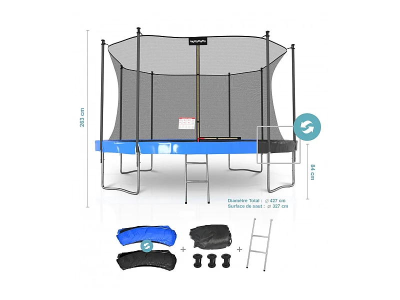 Trampoline de Jardin Classique 14FT ø427cm Pack trampo avec Matelas Réversible Bleu/Noir, Echelle, Filet de sécurité