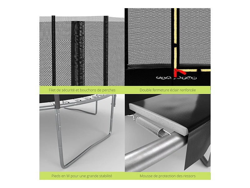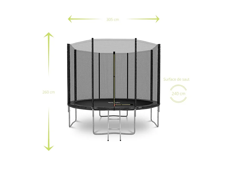 Trampoline de Jardin Deluxe 10FT ø305cm Noir - avec Filet de sécurité, Tapis de saut, Coussin de protection, Echelle