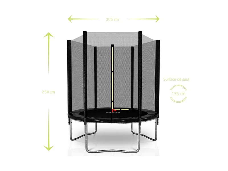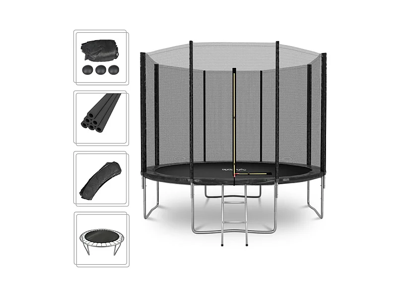Trampoline de Jardin Deluxe ø305cm Noir - avec Filet de sécurité, Tapis de saut, Coussin de protection, Echelle