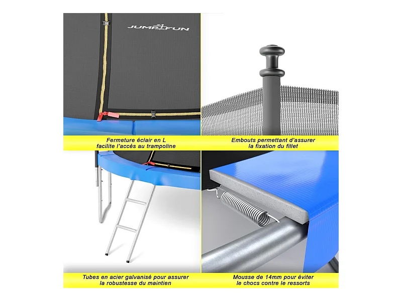 Trampoline de jardin ø 305 cm- 10FT- Filet intérieur, Matelas de protection et Echelle