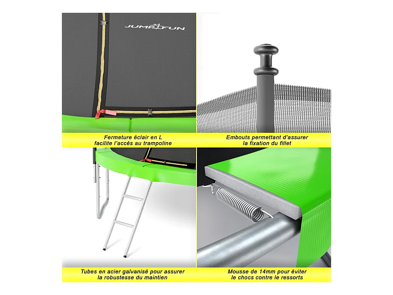 Trampoline de jardin ø 305 cm- 10FT- Filet intérieur, Matelas de protection et Echelle