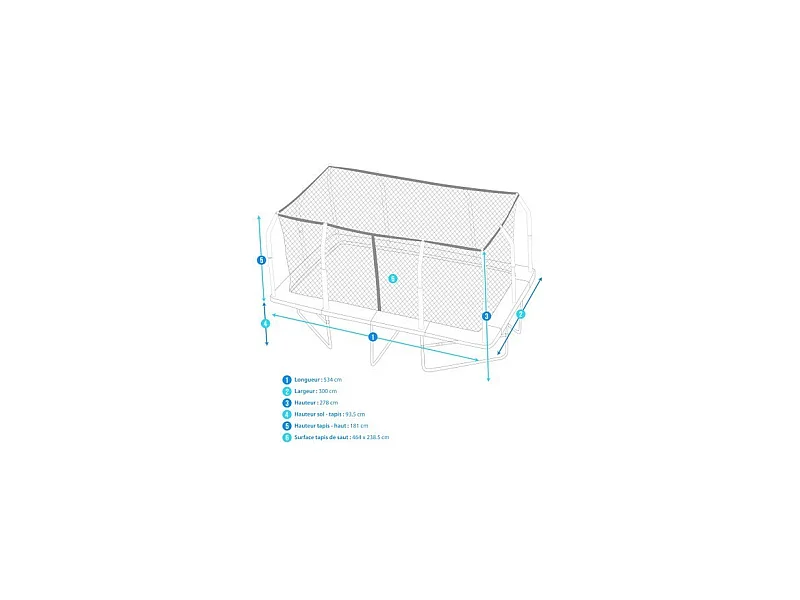 Trampoline de Jardin Rectangulaire XXL 518 x 305 cm - modèle Famille - avec Filet de sécurité, Matelas de Protection et Echelle