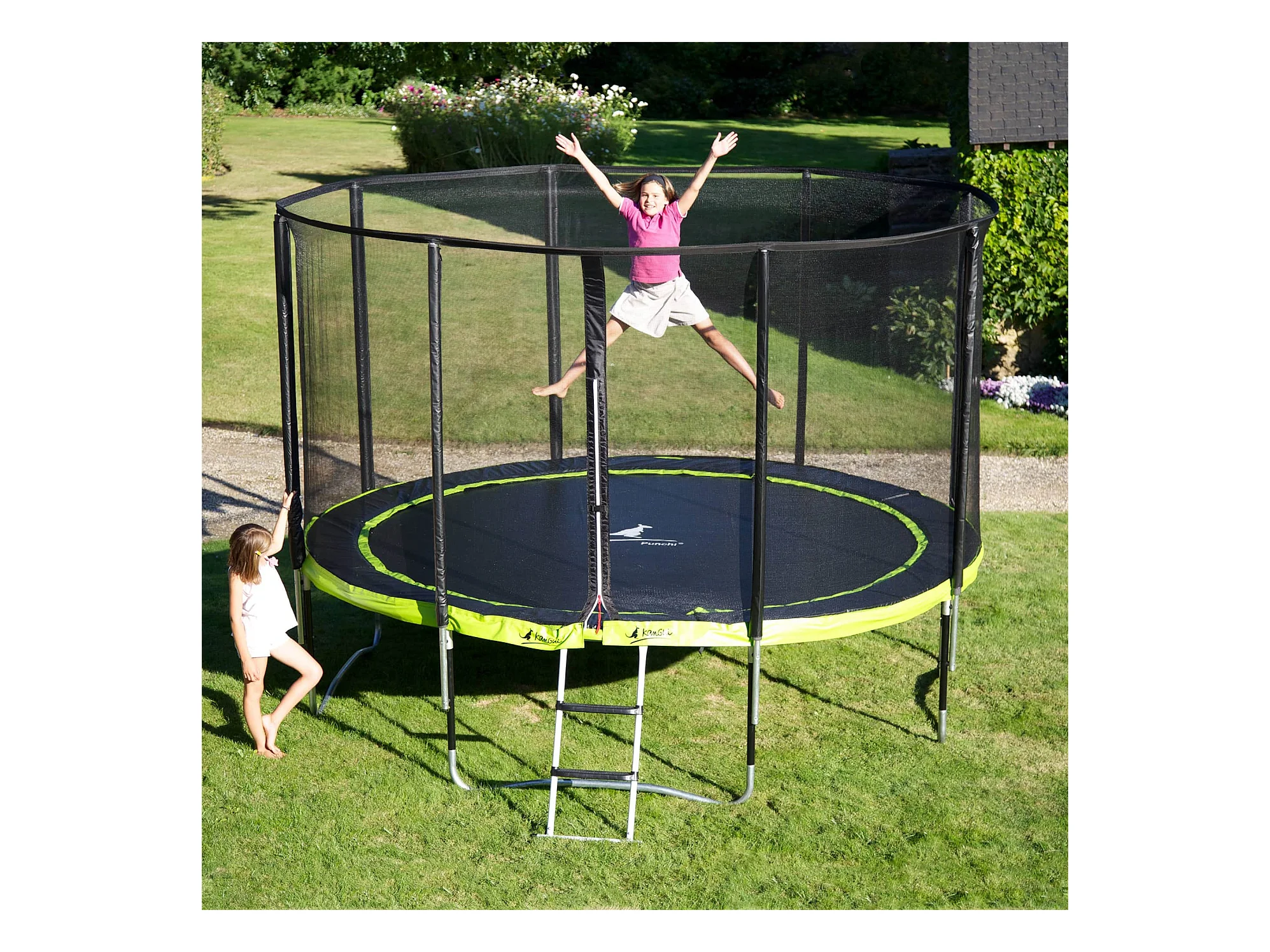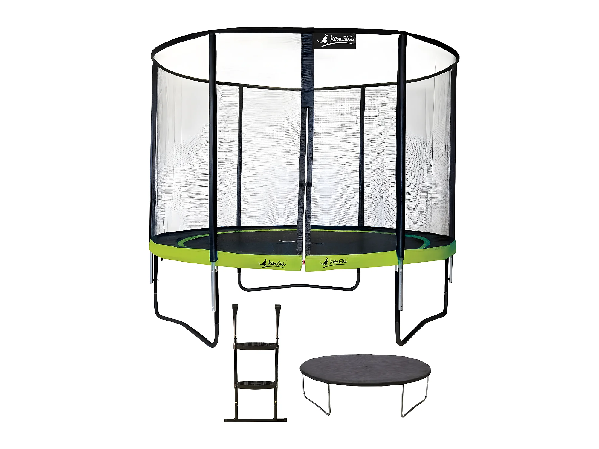Kangui - Trampoline de jardin rond 305 cm + filet de sécurité + échelle + bâche de protection | PUNCHI Vert 300