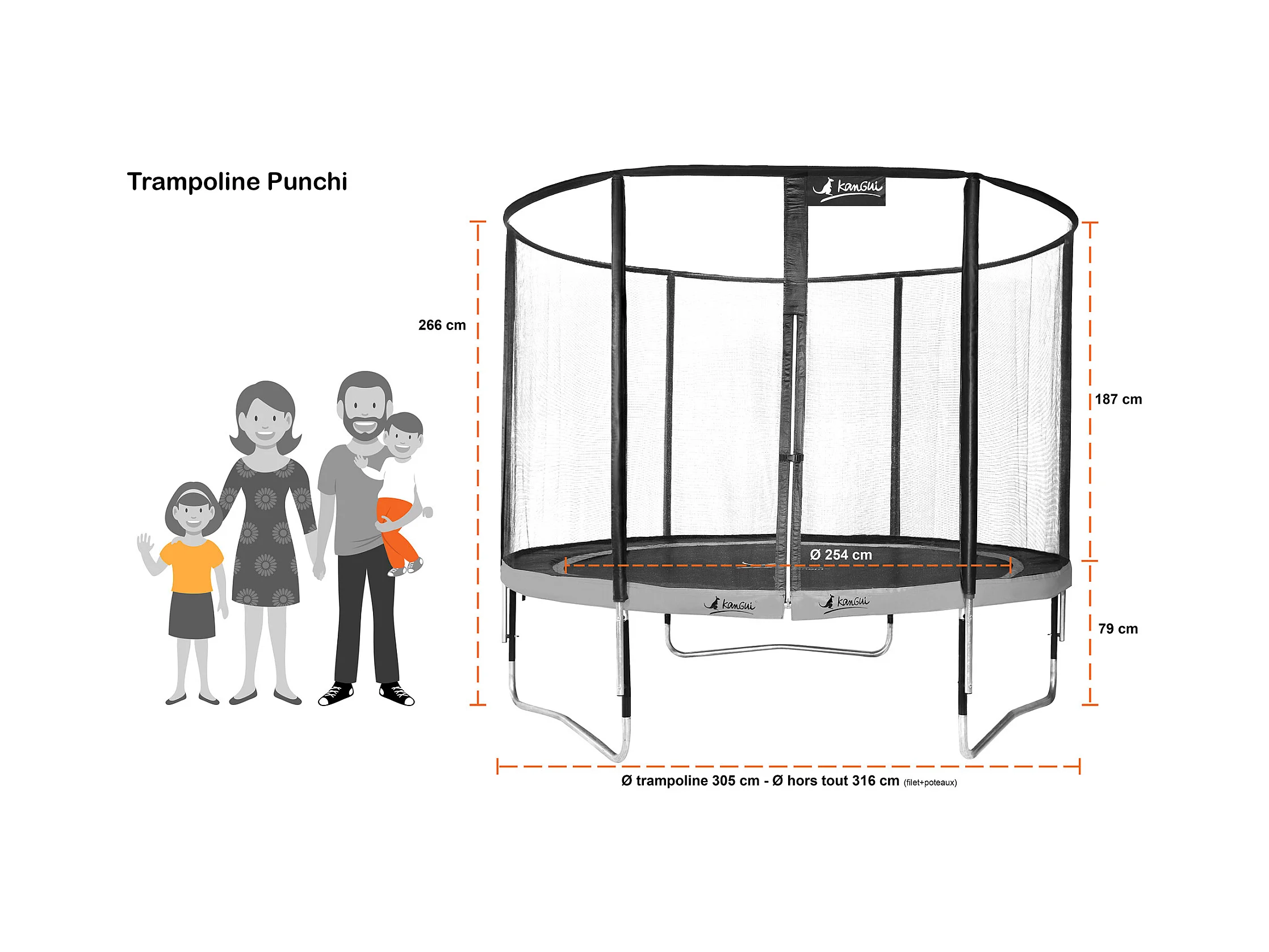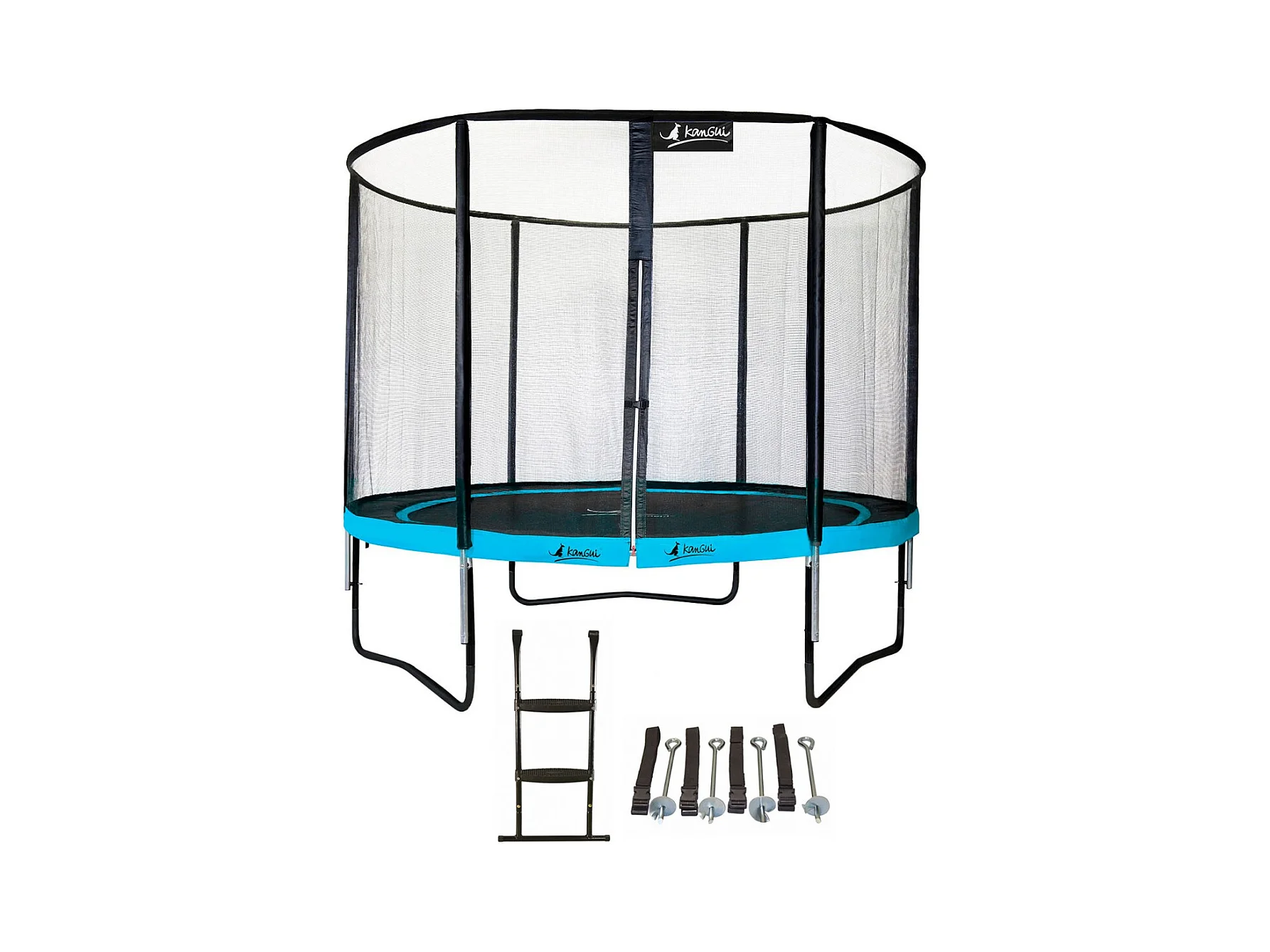 Kangui - Trampoline de jardin rond 305 cm + filet de sécurité + échelle + kit ancrage | PUNCHI Bleu 300