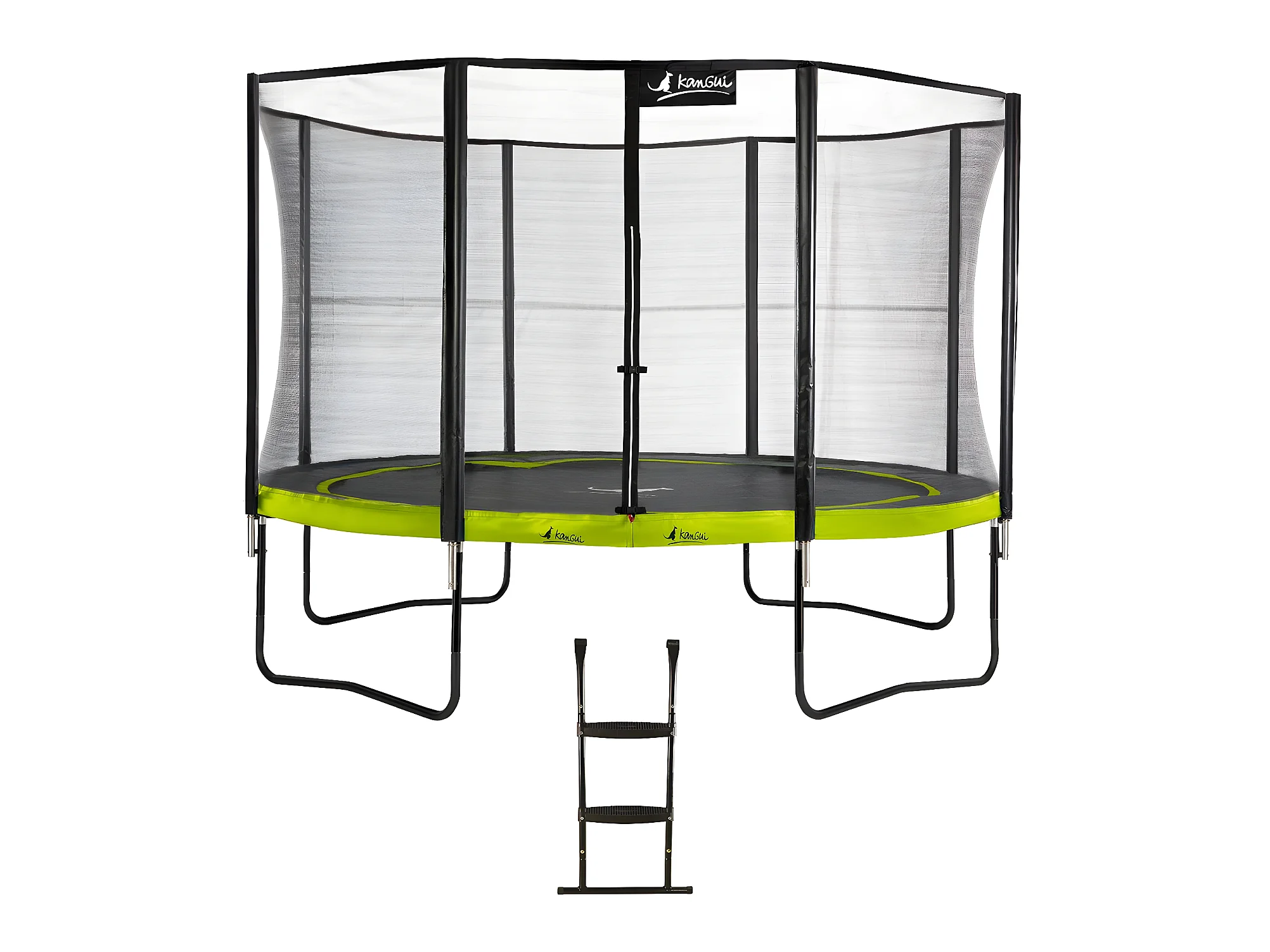 Kangui - Trampoline de jardin rond 430 cm + filet de sécurité + échelle | PUNCHI Vert 430