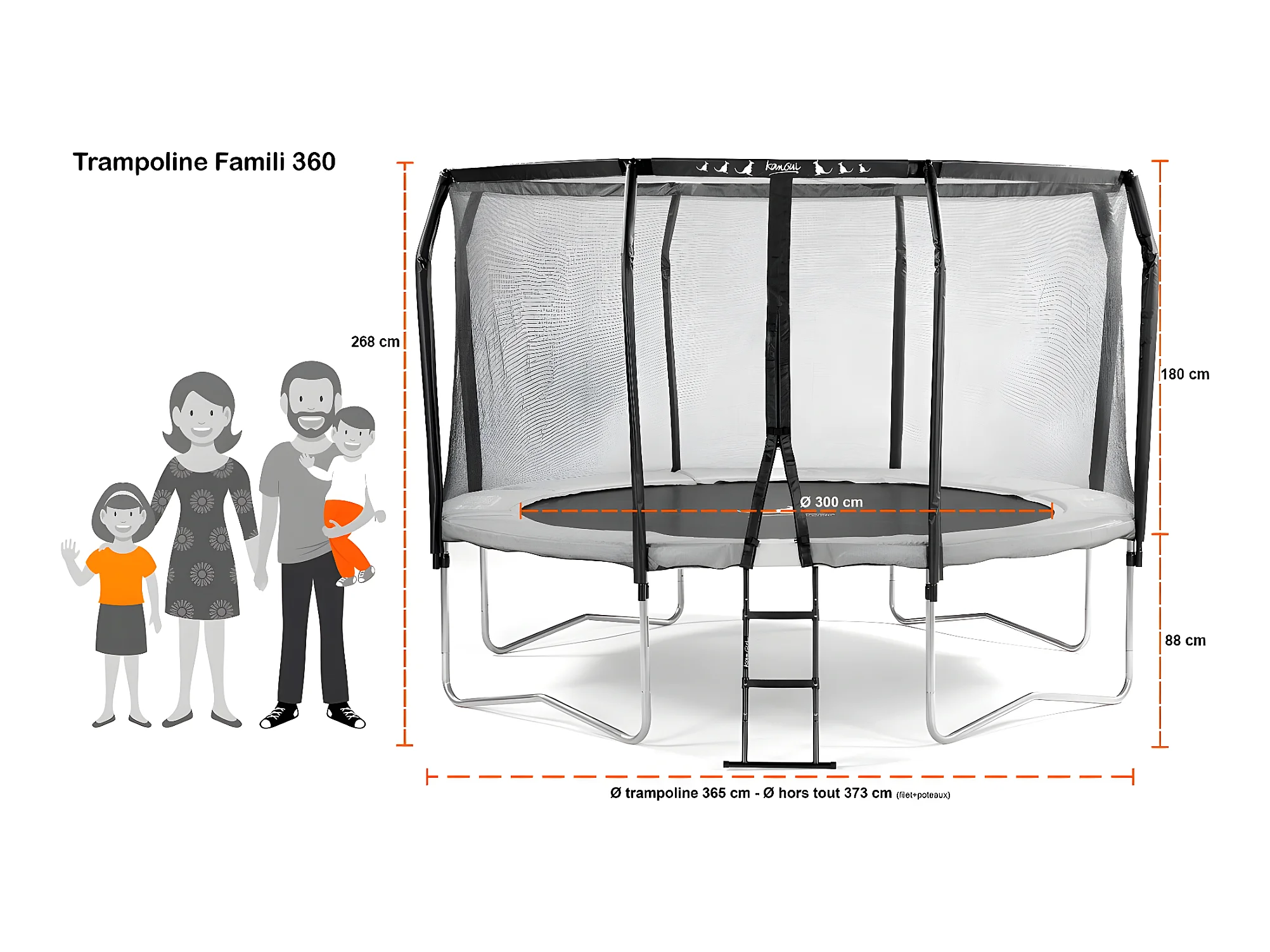 Kangui - Trampoline de jardin rond Ø366cm avec filet de sécurité + échelle - Fabrication européenne - Famili 360