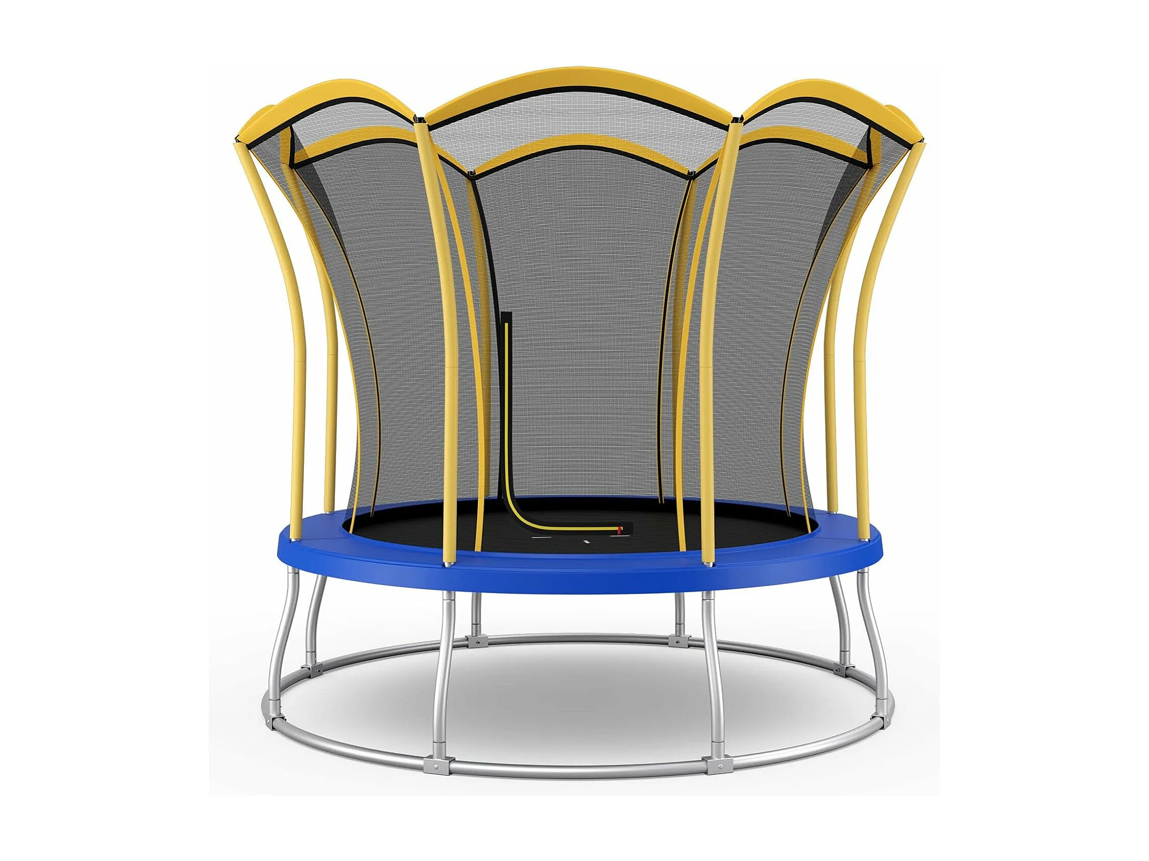 Trampoline Enfant Ø 305cm avec Filet de Protection, Trampoline de Jardin en Forme Fleur avec Certification GS, Coussin de Sécurité & Cadre en Métal Galvanisé