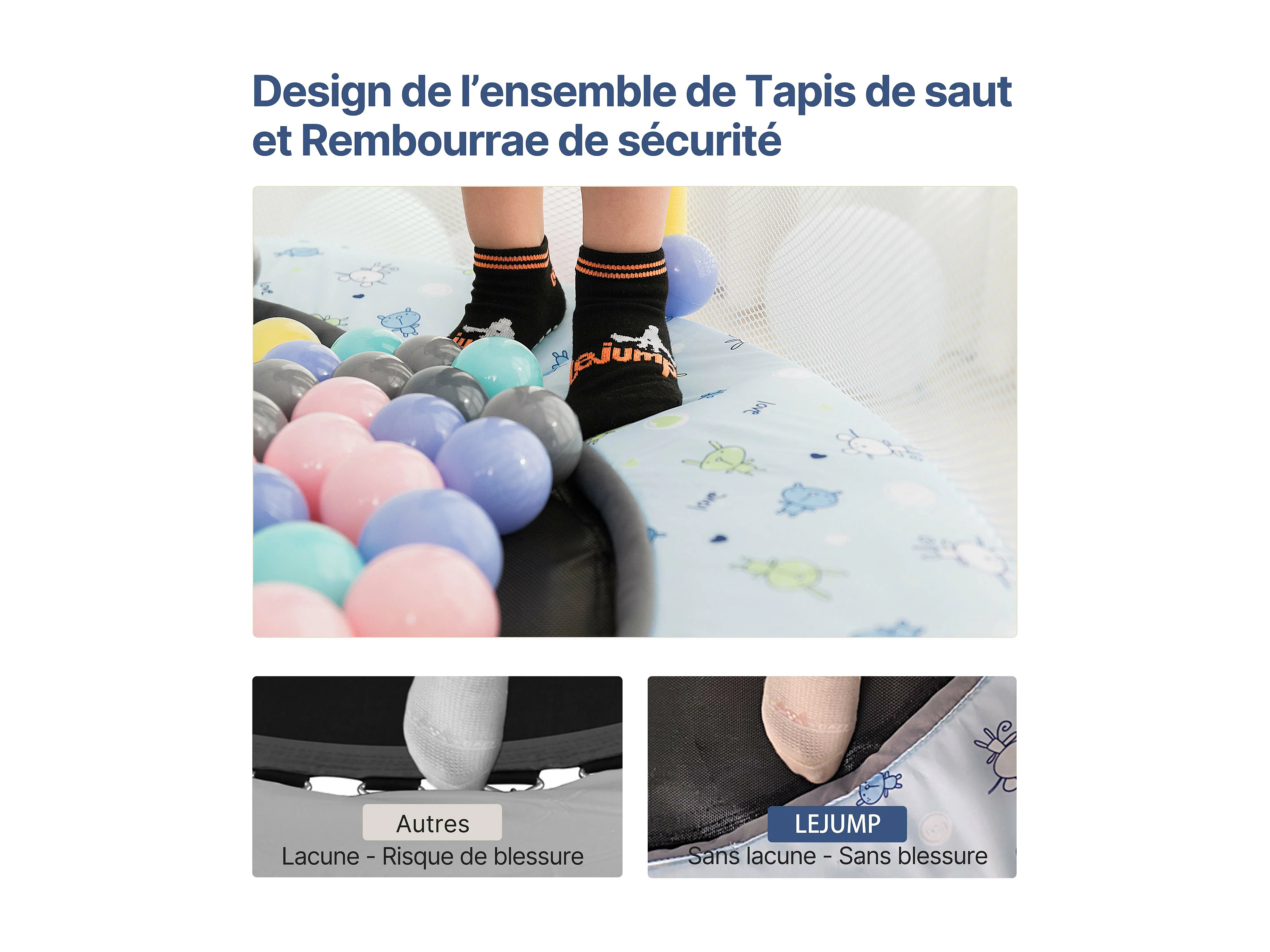 Trampoline Intérieur 130cm Rond Bleu LeJump BabyBleu petit trampoline pour enfants