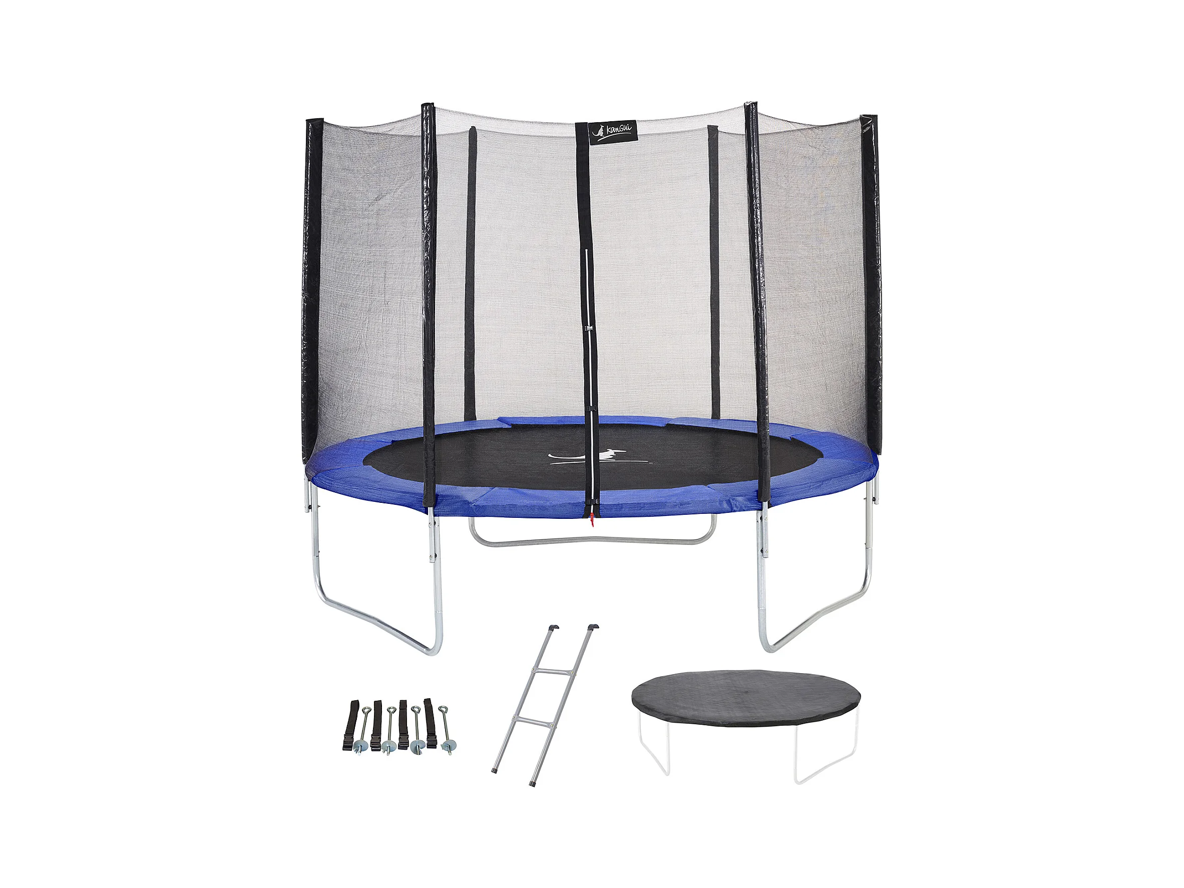 Trampoline rond Bleu Ø300cm avec filet, échelle, bâche et kit ancrage
