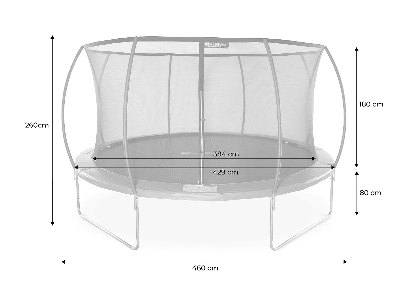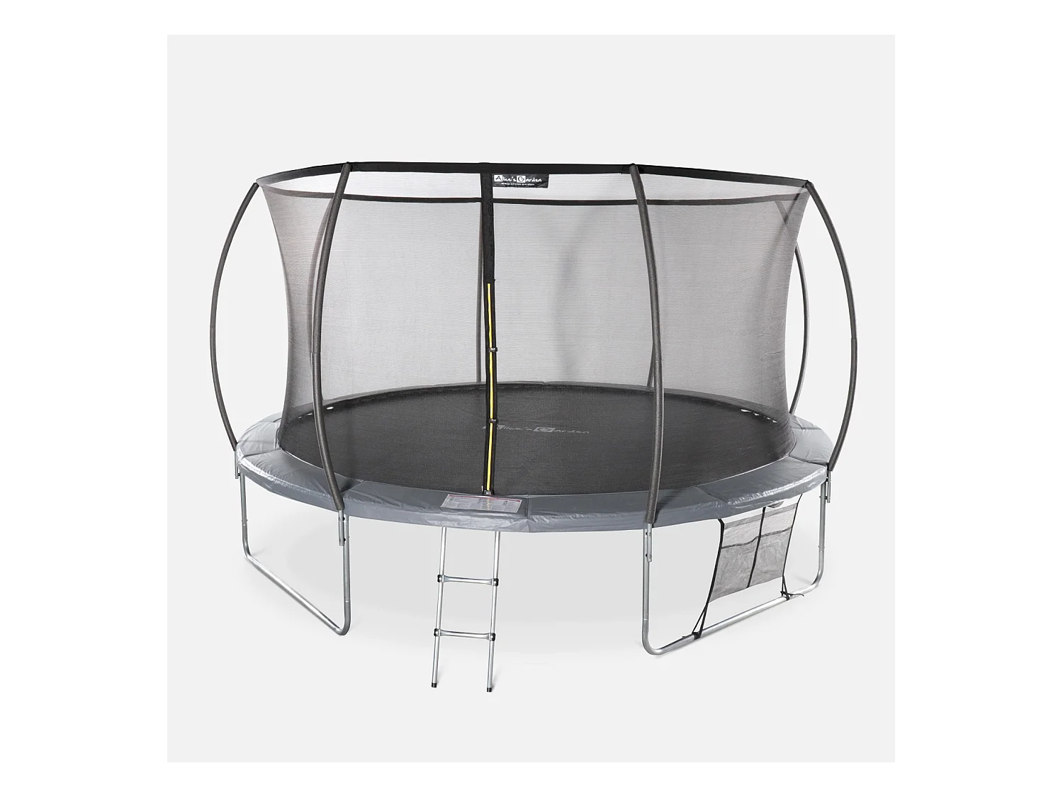 Trampoline rond Ø 430cm gris avec filet de protection intérieur - Venus Inner XXL – échelle. bâche. filet pour chaussures et kit d'ancrage 4.30m 430 cm