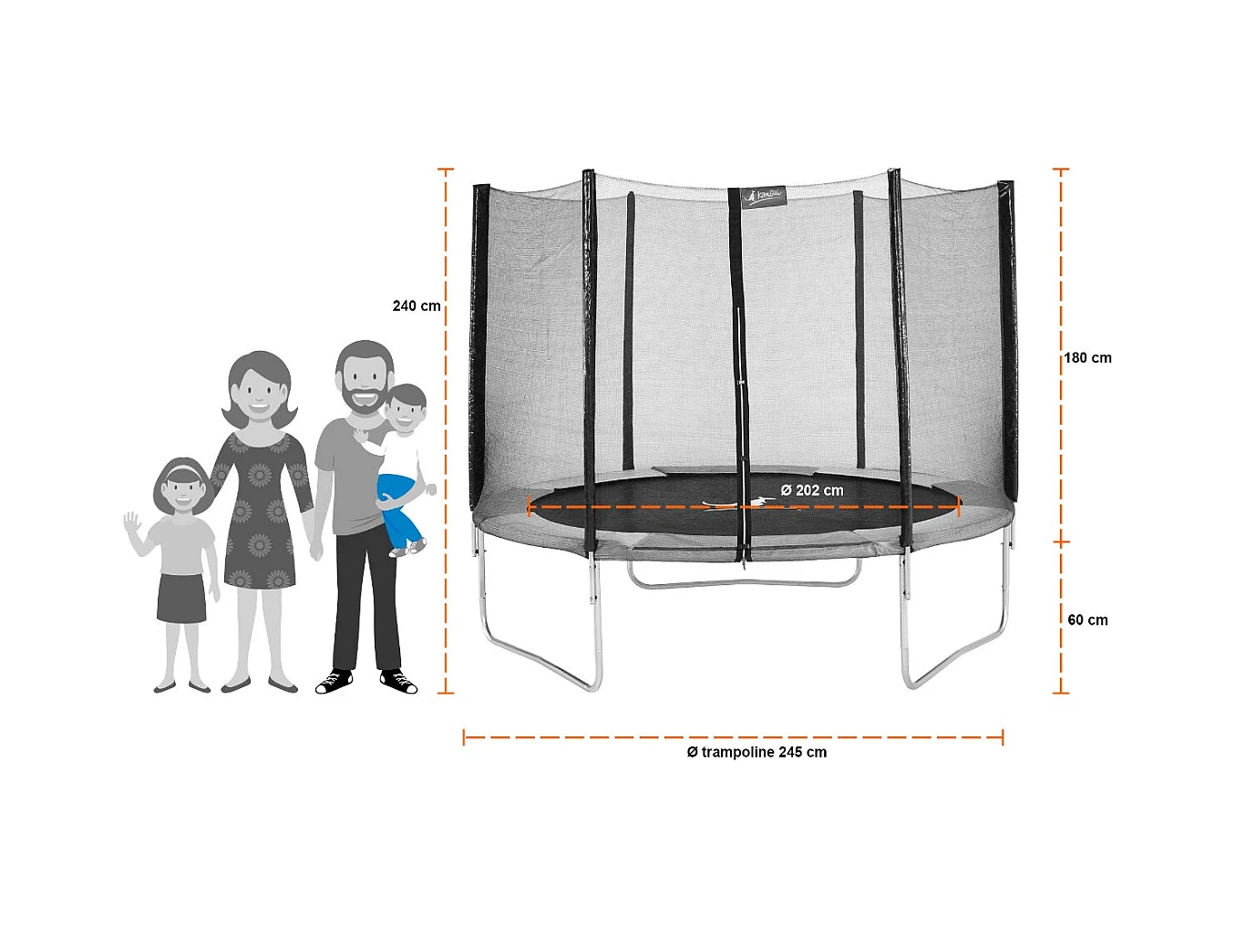 Kangui - Trampoline rond Ø250cm avec filet, échelle, bâche et kit d'ancrage - RALLI 250