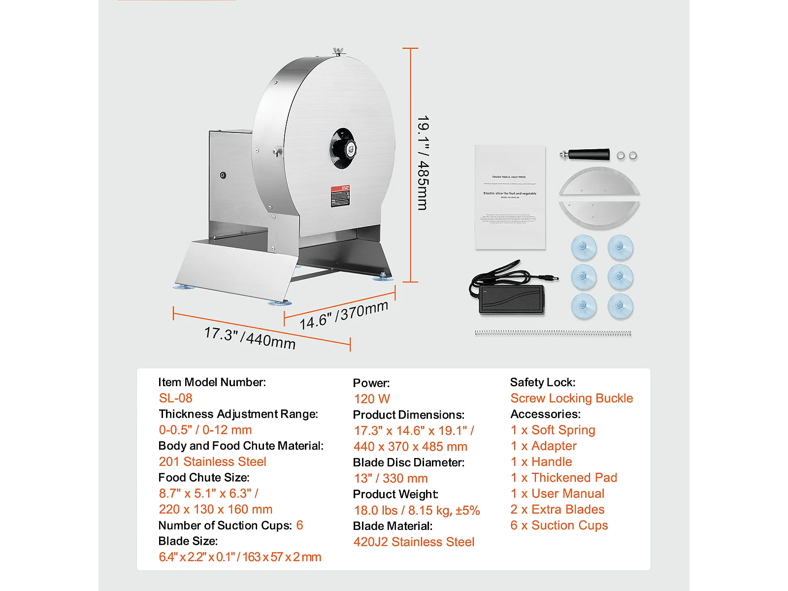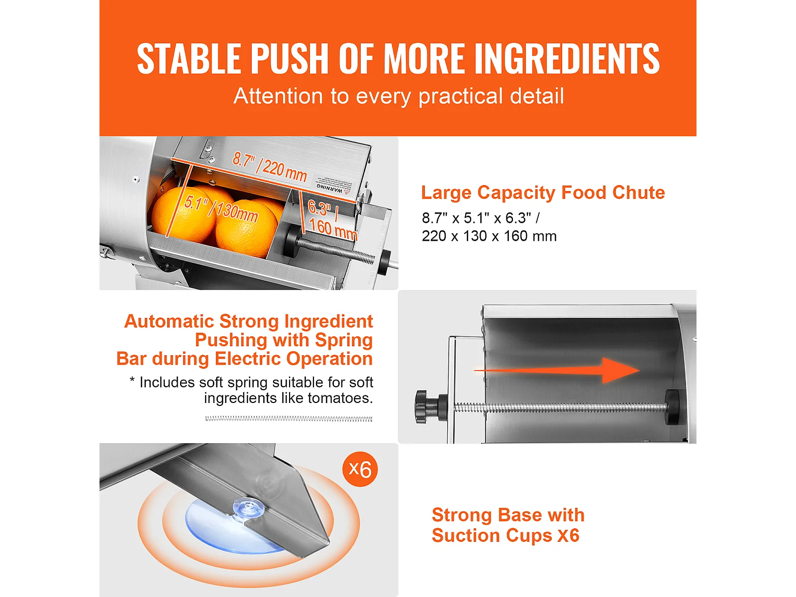 Trancheuse Manuelle SucceBuy Trancheuse à Légumes électrique Manuelle 0-1.27cm, Coupe-Aliments à épaisseur Réglable, Grand Port