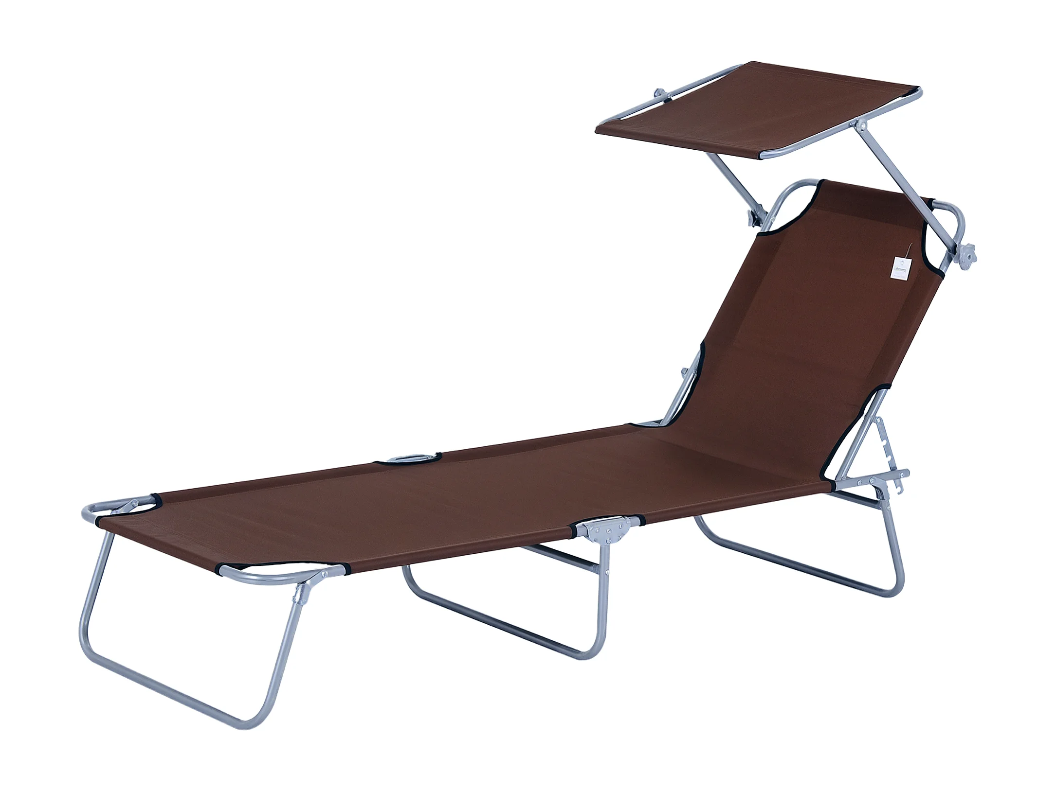 Transat bain de soleil pliable grand confort dossier et pare-soleil réglable multi-positions chocolat